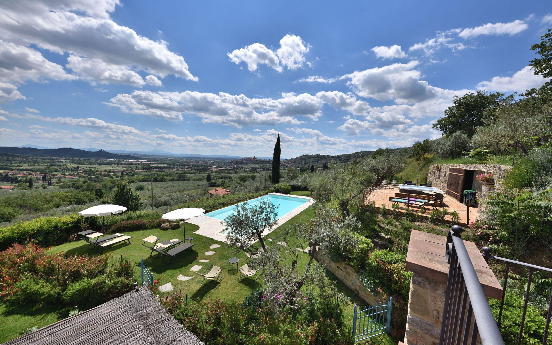 Le panorama que l'on peut observer depuis la structure représente un cadre unique, grâce à la vue dominante sur le Val di Chiana, le château médiéval de Montecchio et quelques villages caractéristiques de ce territoire unique et authentique de l'une des plus belles régions d'Italie.