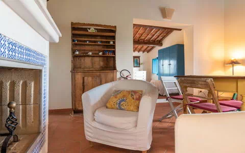 Rez-de-chaussée : cuisine/salle à manger avec 2 plaques de cuisson, 1 chambre avec un lit double et 1 canapé-lit, ainsi qu’un autre canapé-lit simple dans la cuisine-séjour, salle de bain avec douche.