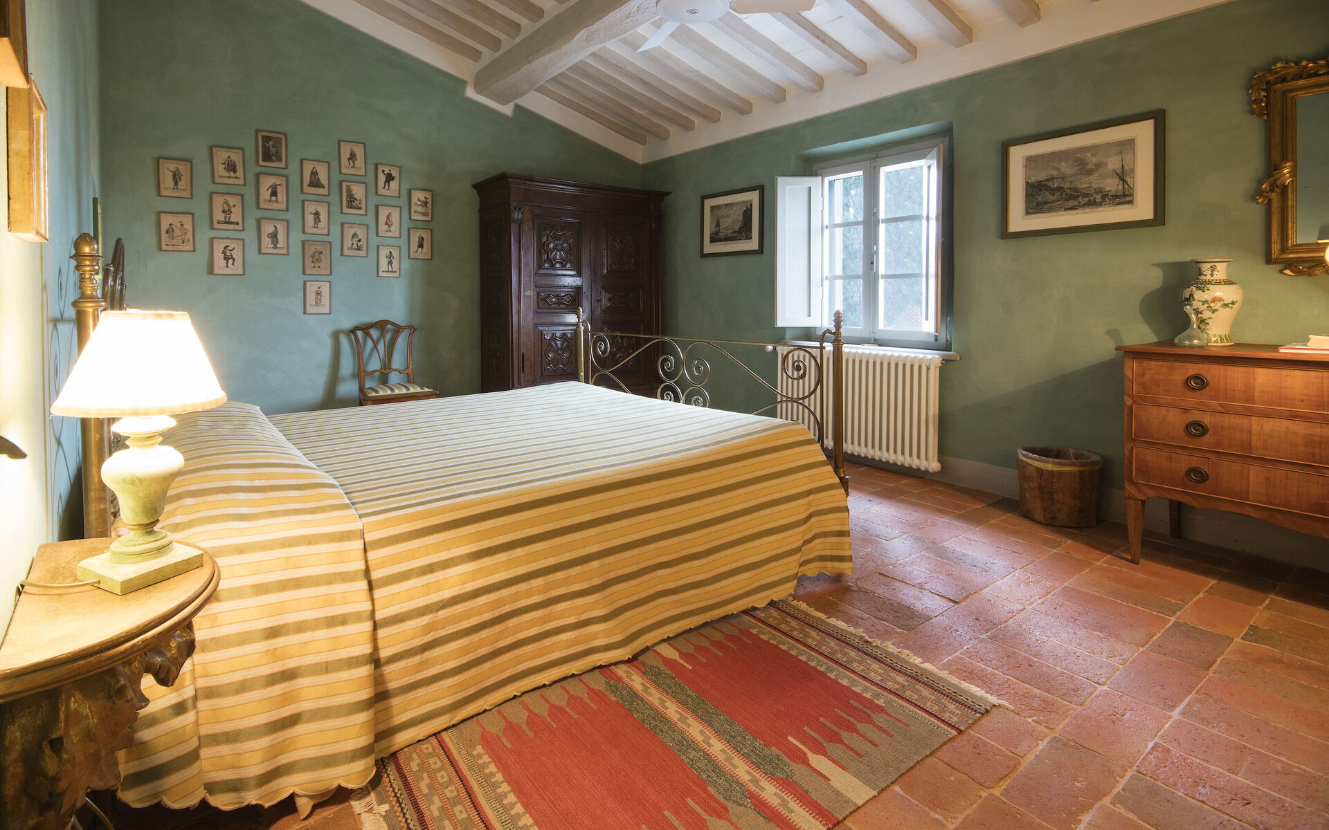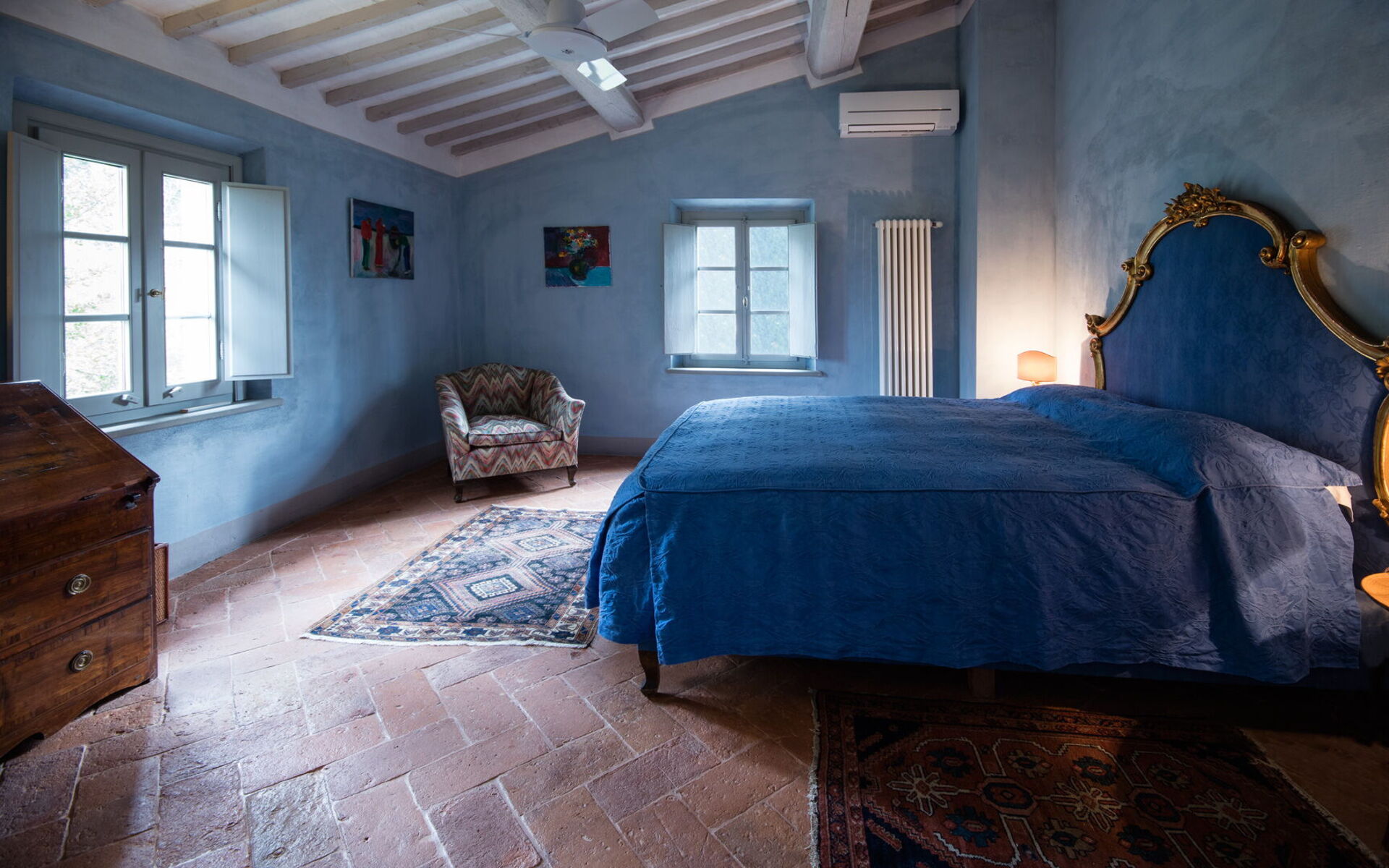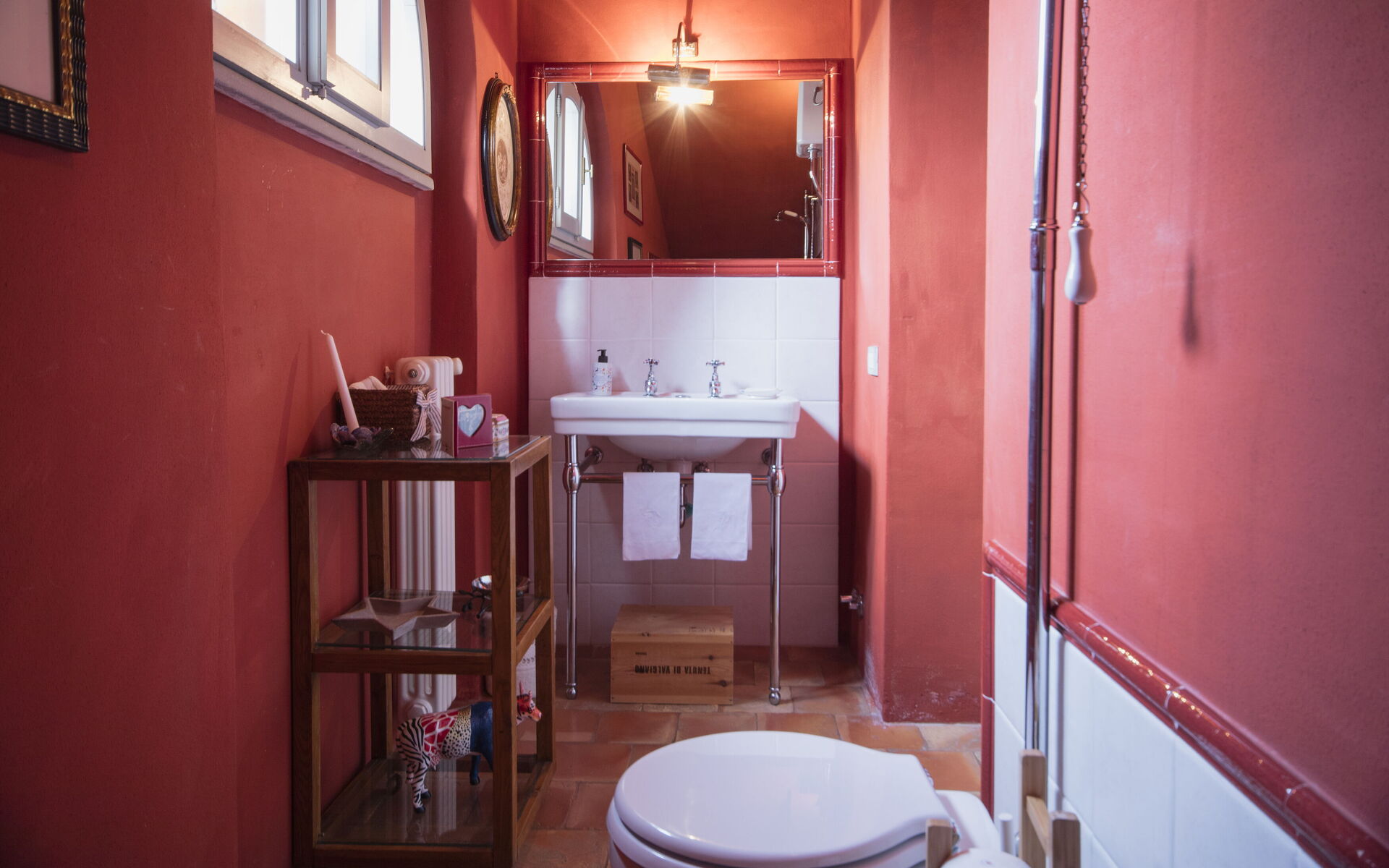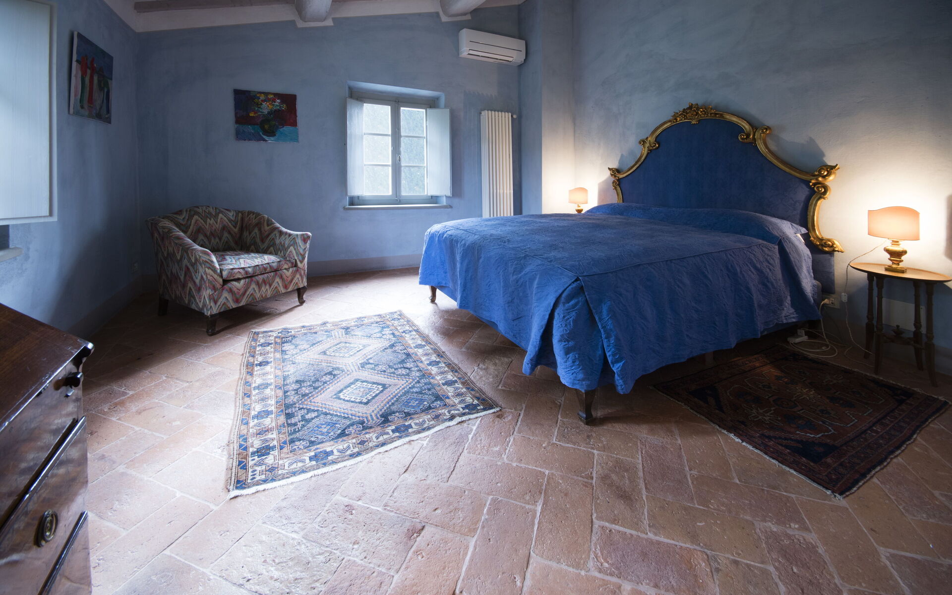 - 1 chambre double avec salle de bains attenante : douche à l’italienne, WC, bidet, lavabo.