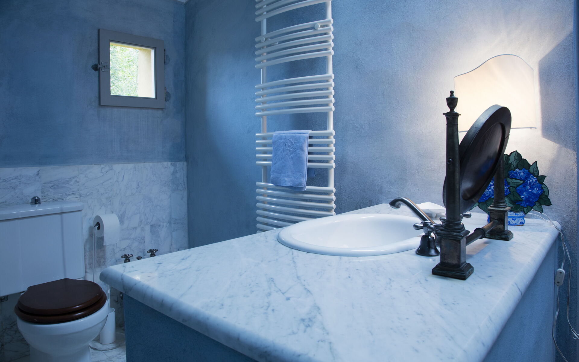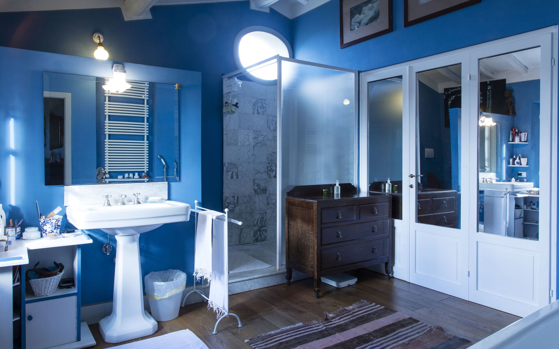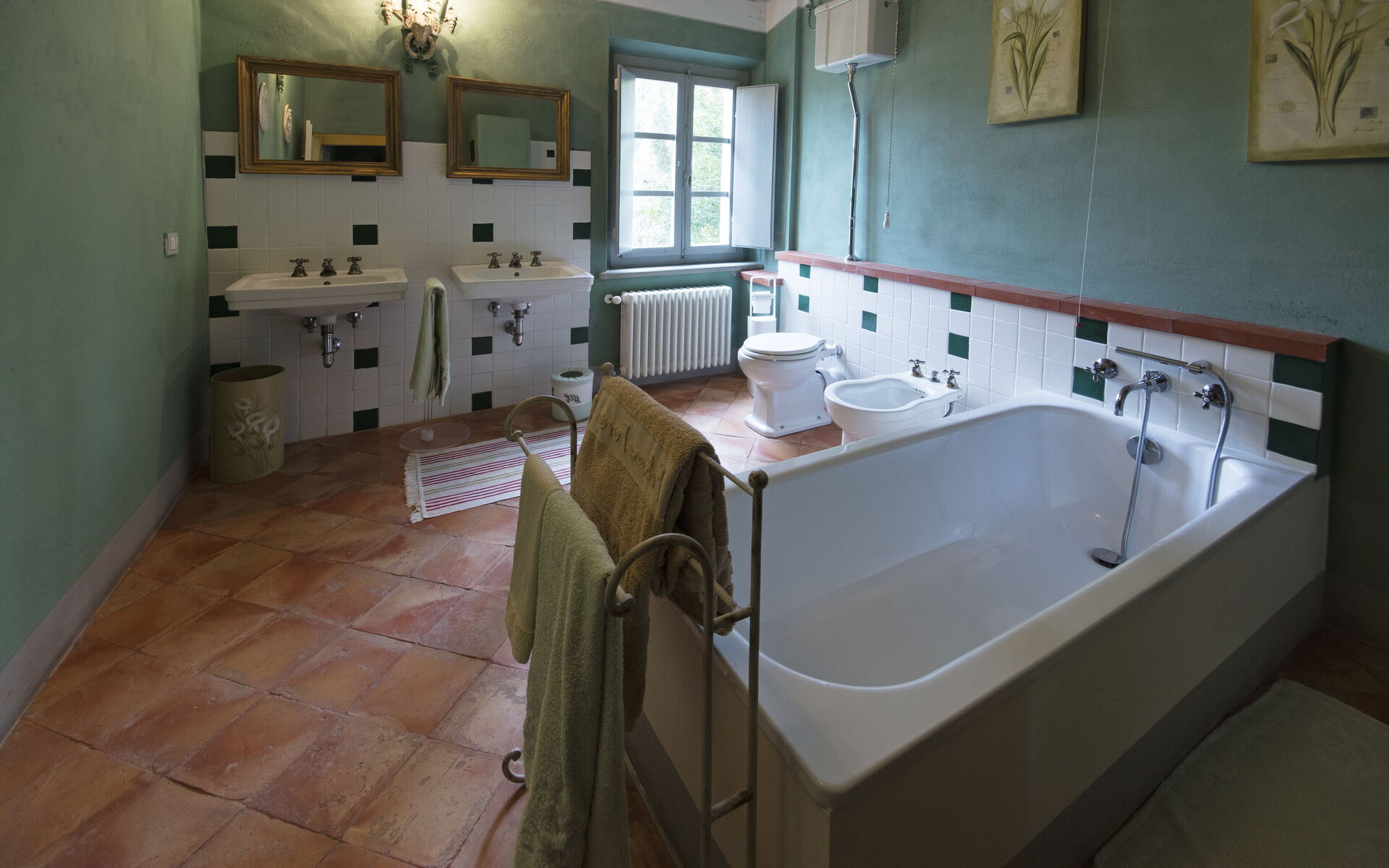 - Salle de bains : douche à l’italienne, baignoire séparée, WC, bidet, double vasque