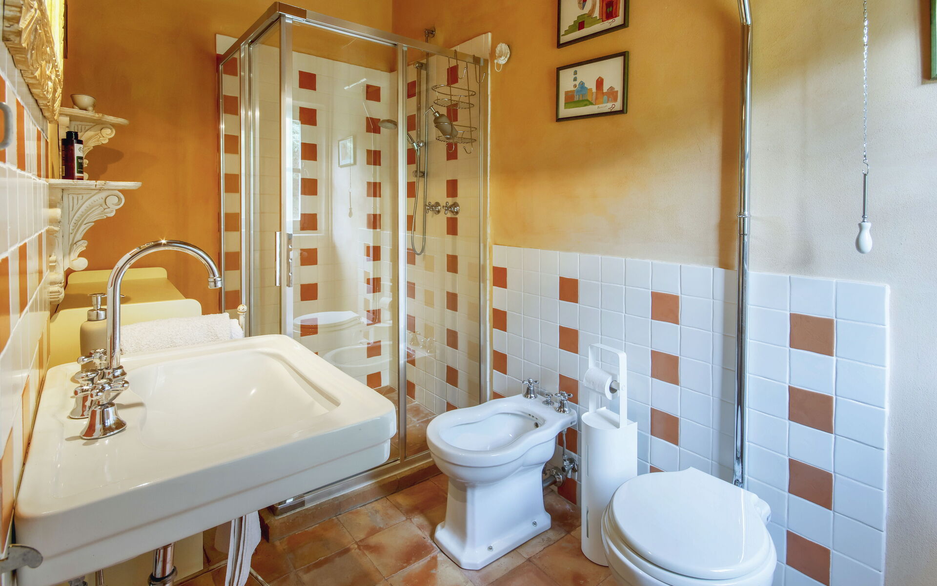 Salle de bains avec douche (lavabo, WC, bidet).