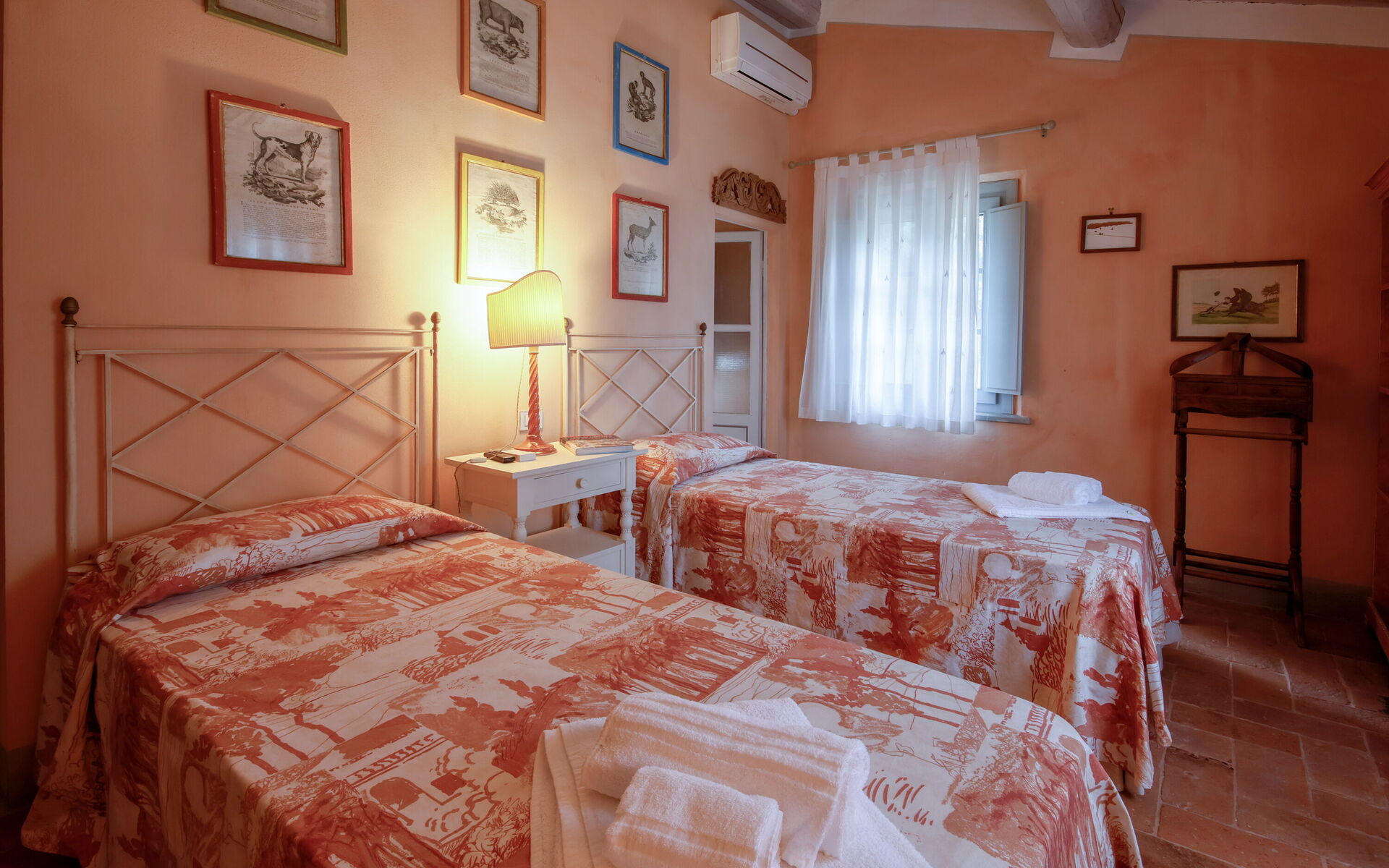 Chambre avec deux lits simples.
