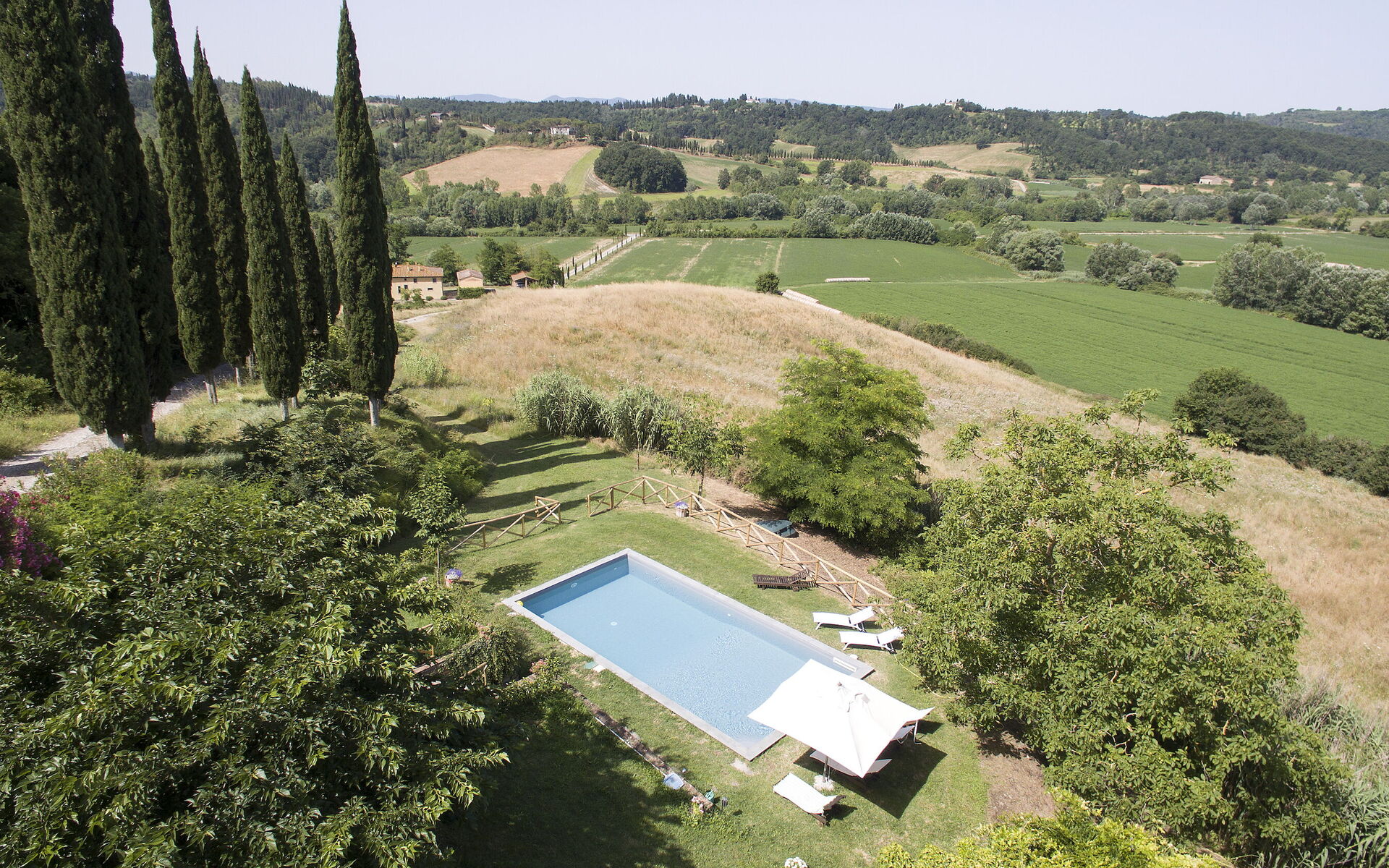 À quelques minutes en voiture, plusieurs charmants villages préservés, tels que Ghizzano (1,5 km) et Peccioli (9 km), proposent restaurants, musées, pharmacie et supermarché. Castelfalfi, à seulement 8 km, abrite le plus grand golf de Toscane, un fantastique parc d'aventure pour les amateurs d'escalade et d'excellents restaurants. C'est le point de départ idéal pour explorer les villes les plus célèbres de Toscane, telles que Volterra (25 km), San Gimignano (30 km), Pise (50 km), Sienne (80 km) et Livourne (55 km). Les trains au départ de Pontedera (22 km) vous emmèneront à Florence en 40 minutes et à Pise en 15 minutes.