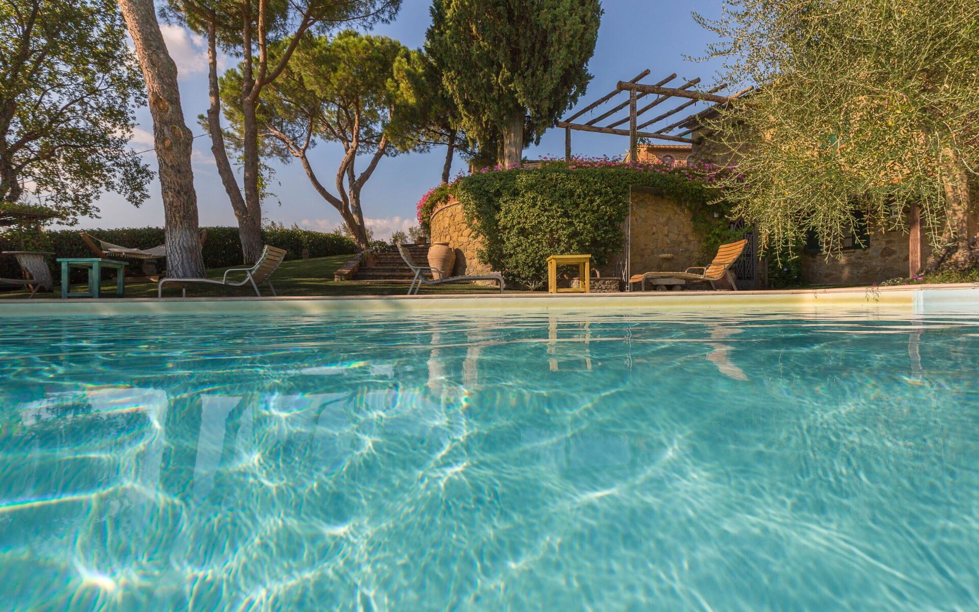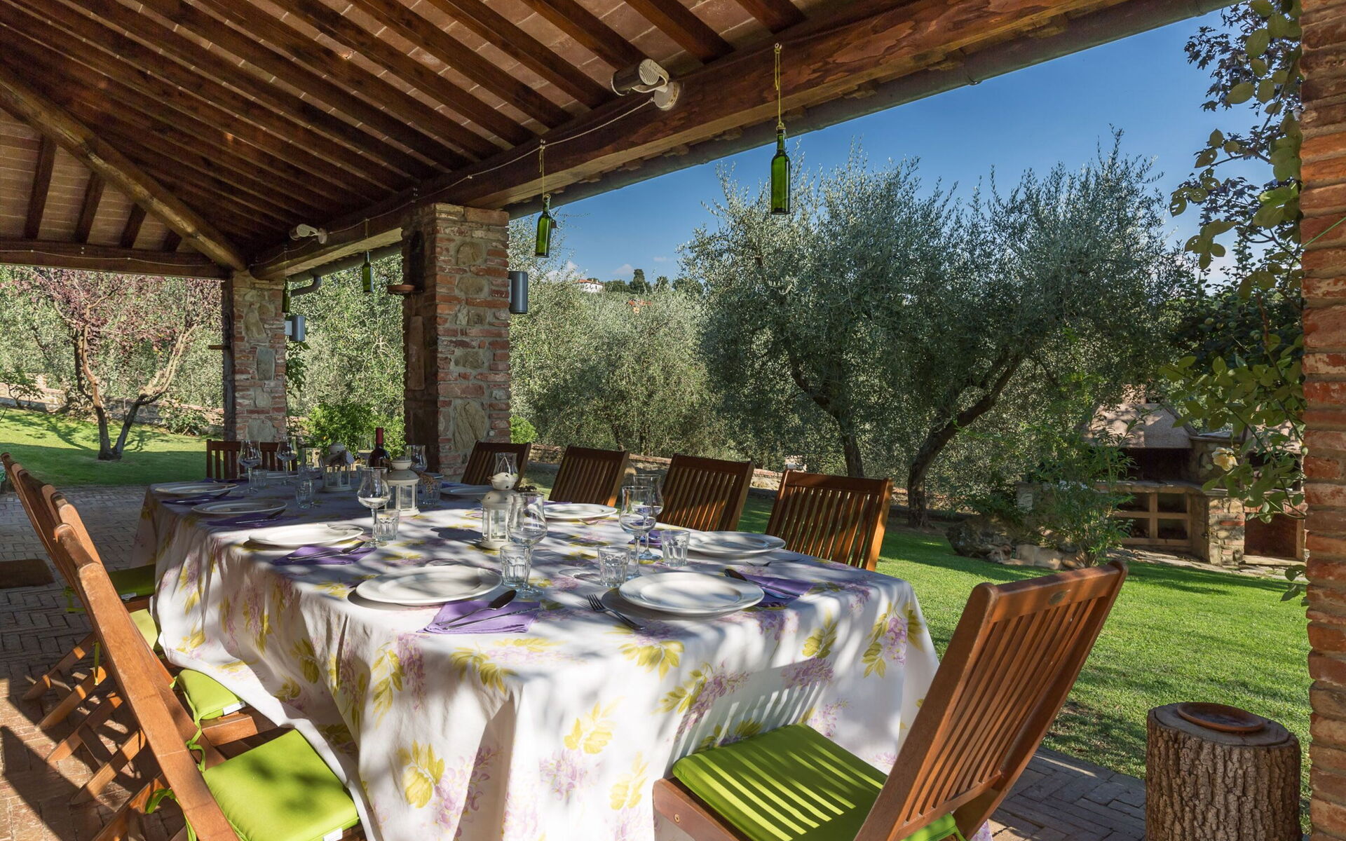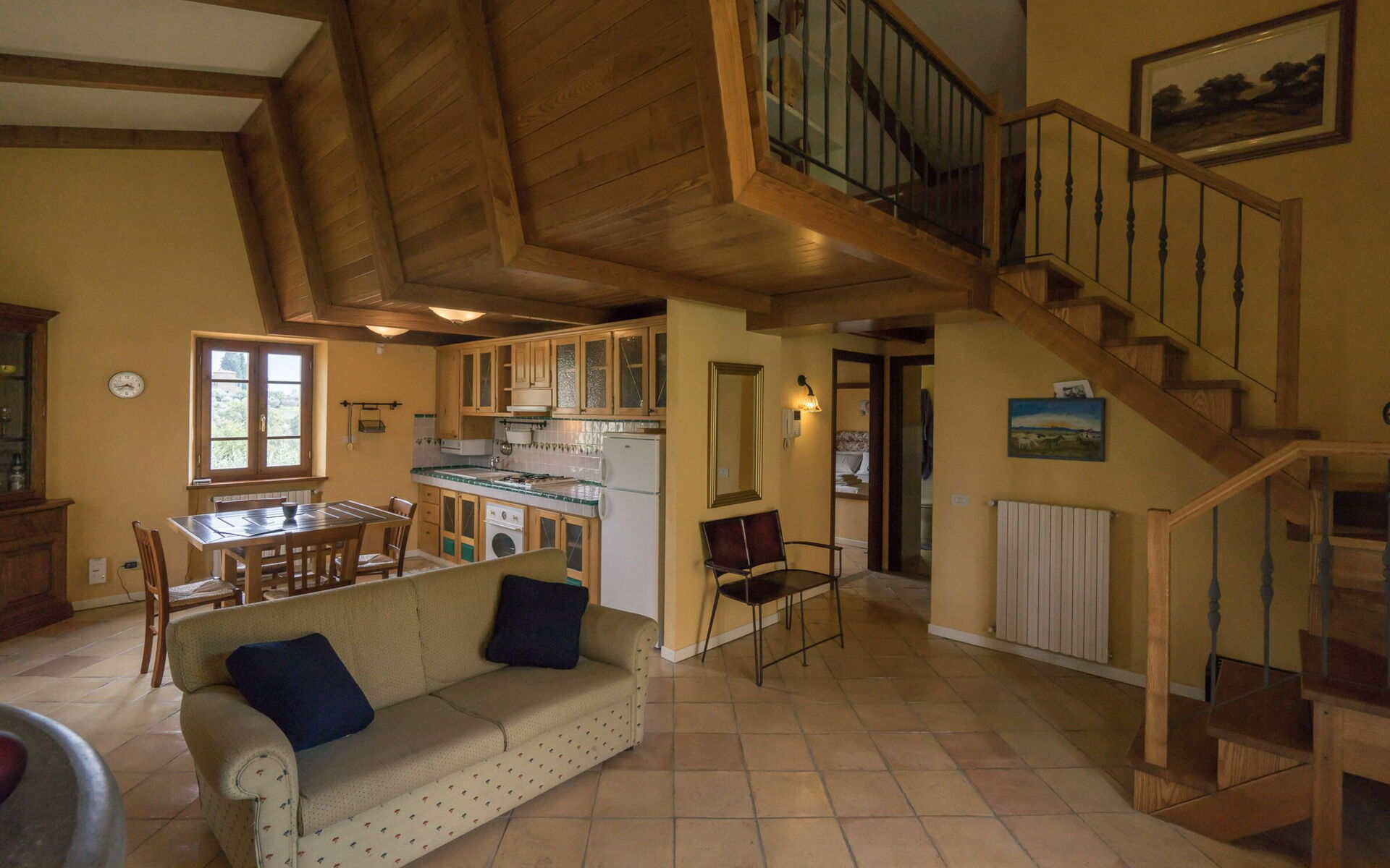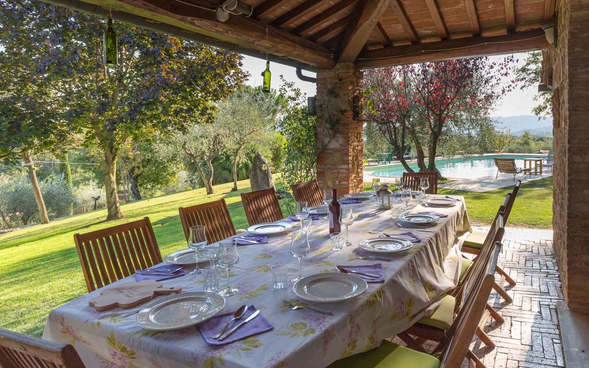 La villa est entourée de 8 hectares de cultures et de bois complètement immergés dans le Val di Chiana. Dans la propriété, il y a aussi un potager / verger, où les légumes et les fruits de saison peuvent être utilisés comme accompagnement pour des plats traditionnels toscans exquis. Le cadre enchanteur de cette résidence se prête également aux petits mariages, anniversaires ou autres cérémonies.