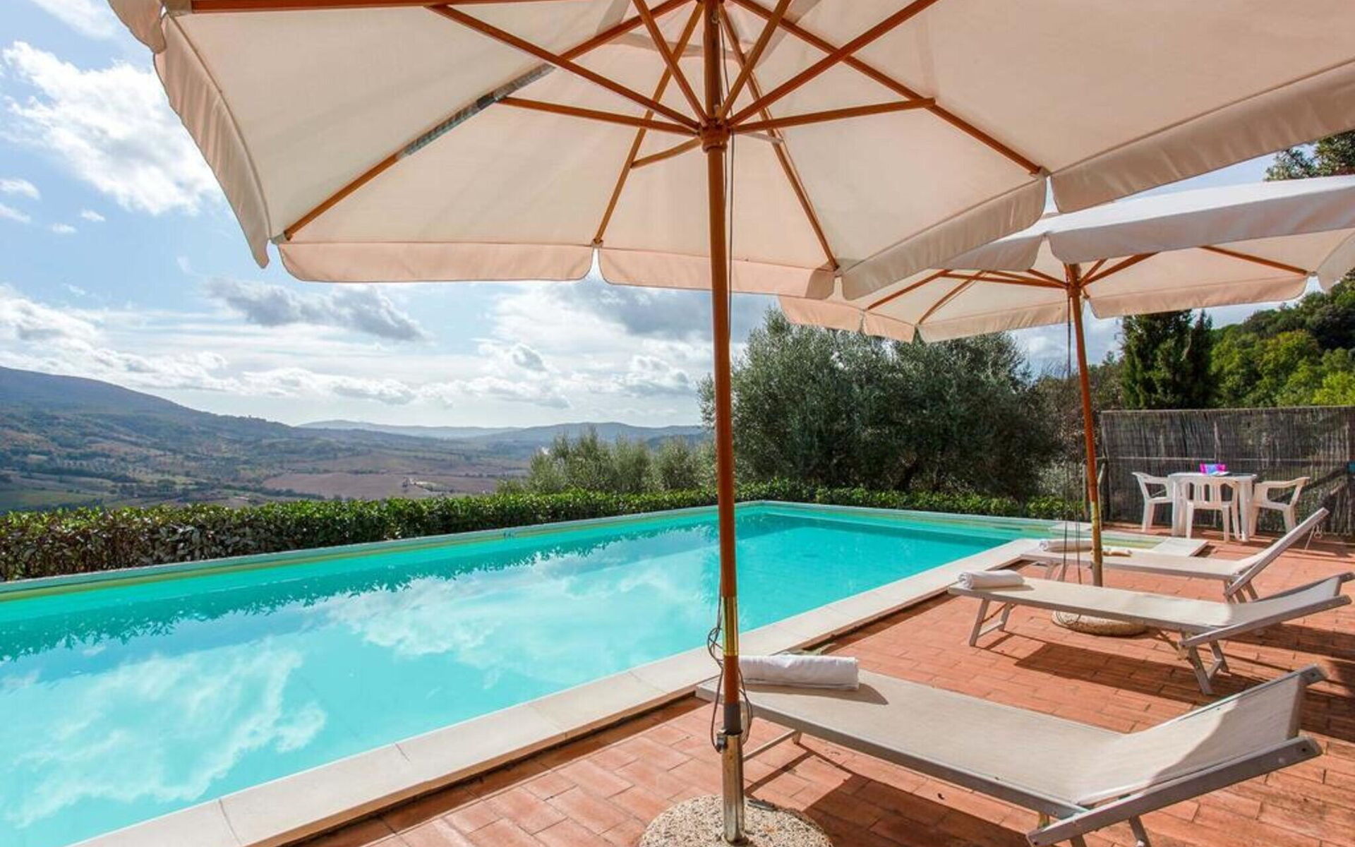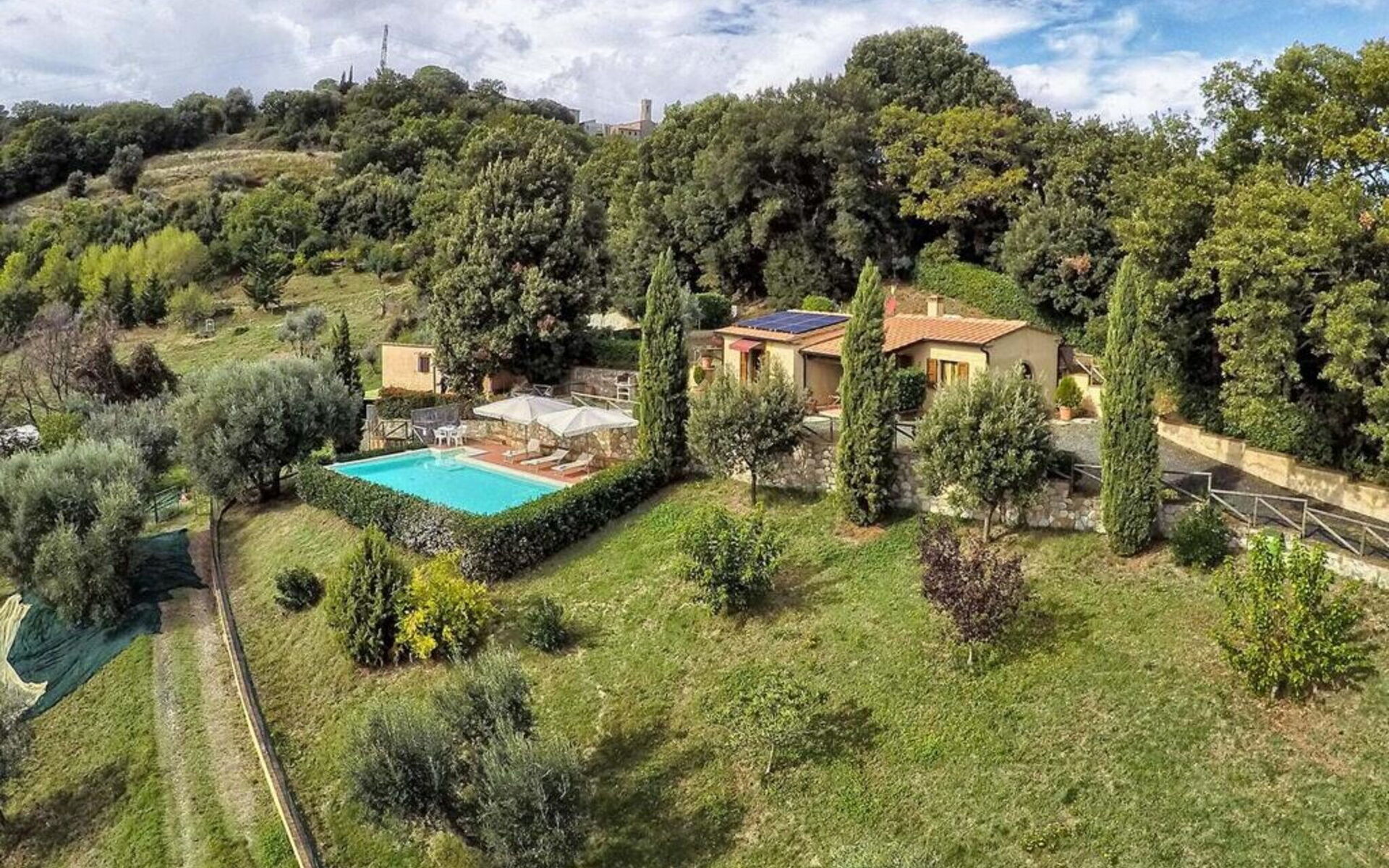Charmante ferme récemment construite, située en position panoramique avec une vue magnifique sur une ancienne tour et les collines environnantes. Simplement meublée dans un style rustique toscan, la maison est équipée de tout le confort et est le point de départ idéal pour profiter de vacances en contact avec la nature et découvrir des itinéraires intéressants dans les villages médiévaux voisins. Dehors, nous trouvons une piscine (10m.x 5m; profondeur 140cm), douche extérieure et barbecue. Wifi gratuit. Lustignano à 3 km (nourriture); Canneto à 5 km (restaurant); Volterra à 22 km; San Gimignano à 55 km; Sienne à 68 km; Pise à 77 km.