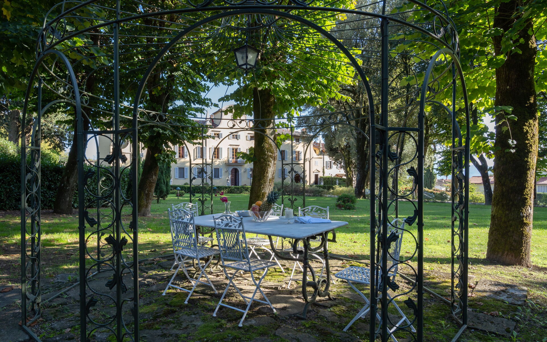 La Villa est entourée d'un jardin italien bien entretenu et suggestif avec ses statues et ses haies, les arbres centenaires et la chapelle privée attenante et originale. Dans ce contexte féerique, nous pouvons également trouver la belle piscine à débordement (6m. x11m., Prof. 150), pour l'usage exclusif des invités, avec une zone d'eau basse pour les enfants et un coin détente avec HydroMassage. Le parc est également équipé de gazebo, fauteuils, tables et chaises, où les clients peuvent se détendre pour un apéritif ou dîner en plein air, profitant du barbecue à leur disposition.
