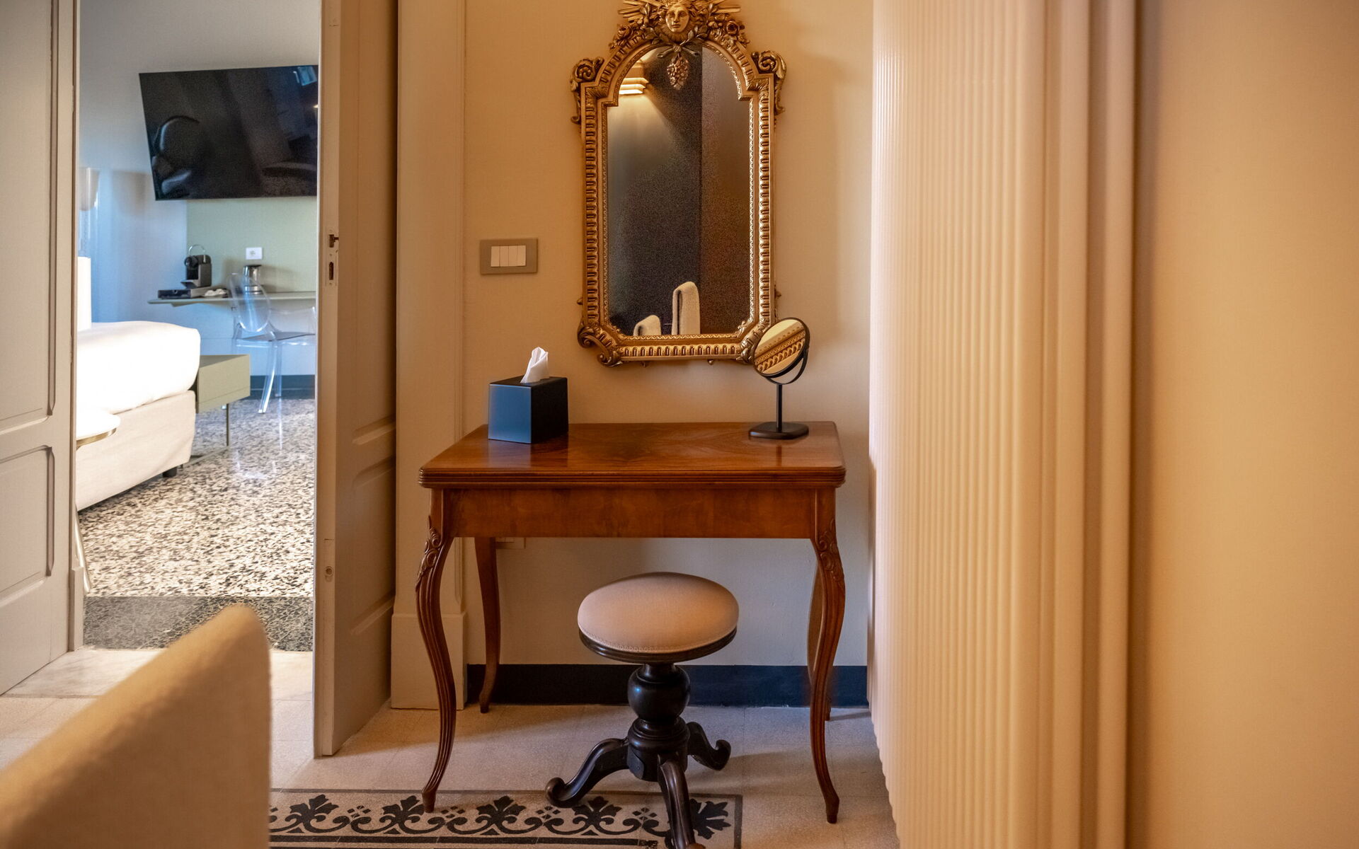 The suite is completed by a large private bathroom with a spacious shower. Every detail has been taken care of to ensure elegance, privacy, and maximum comfort.