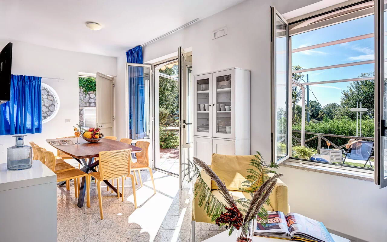 Perfectly furnished for a large family or a group of friends, the Deluxe 3-Bedroom Apartment is a spacious ground floor apartment with a combined living room, kitchen and dining area overlooking a large terraced garden with spectacular sea views. The apartment comfortably accommodates up to 8 people in a variety of double and twin rooms, with the option of a double sofa bed. The two recently renovated designer bathrooms have two spacious shower stalls with adjustable shower heads.