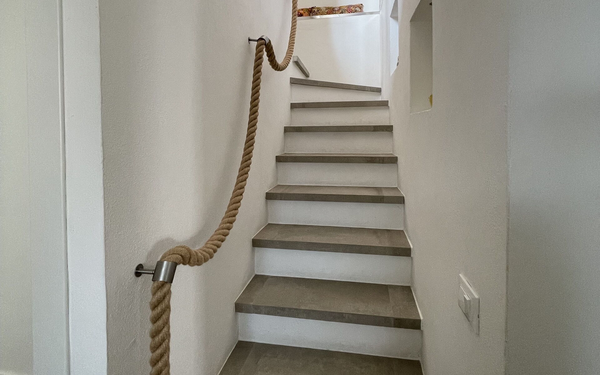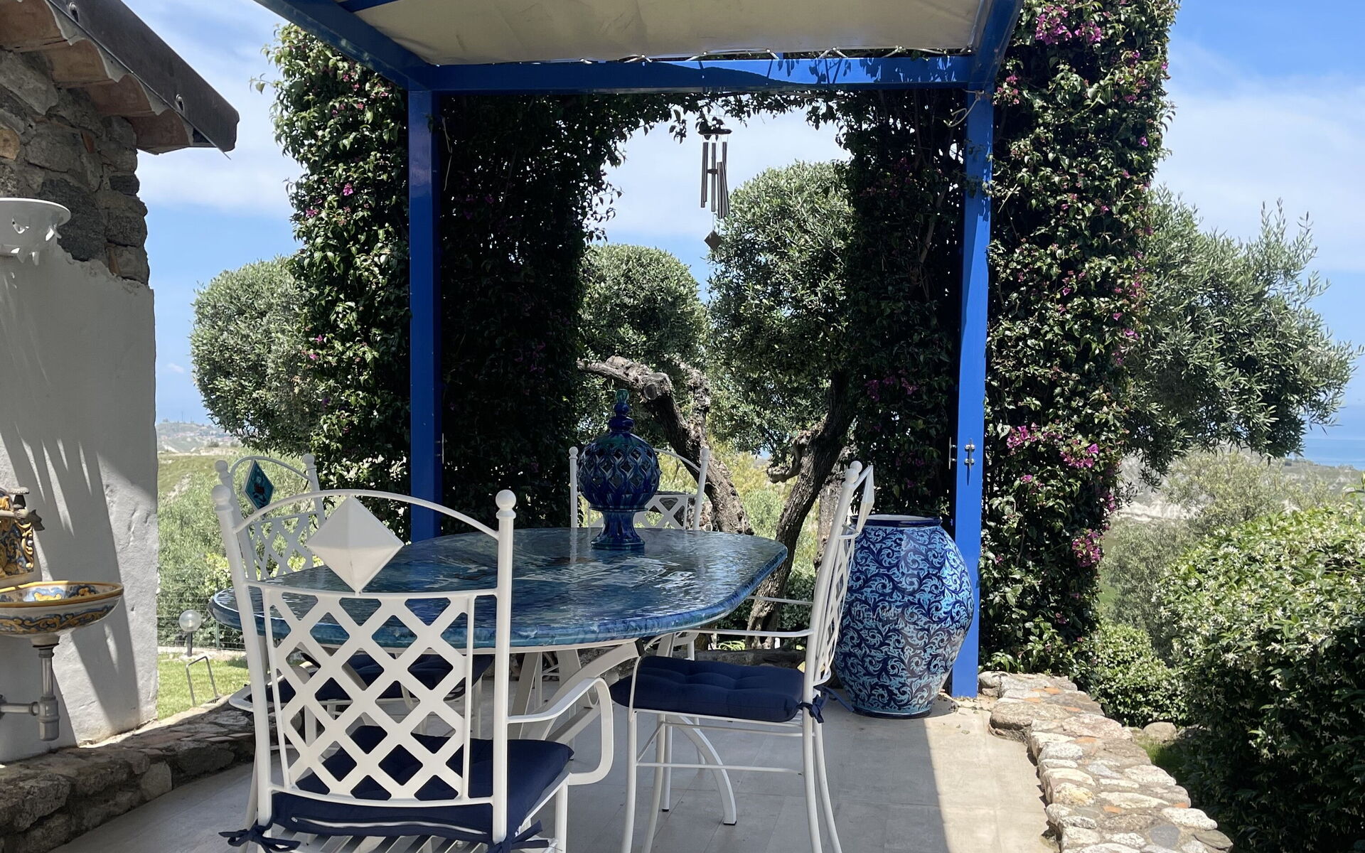 Outside, guests can enjoy two equipped patios: one with a comfortable lounge area for relaxing and another with outdoor dining area and barbecue, ideal for al fresco dinners overlooking the sea and the hills. The terraced garden with Mediterranean plants creates an authentic and peaceful atmosphere.