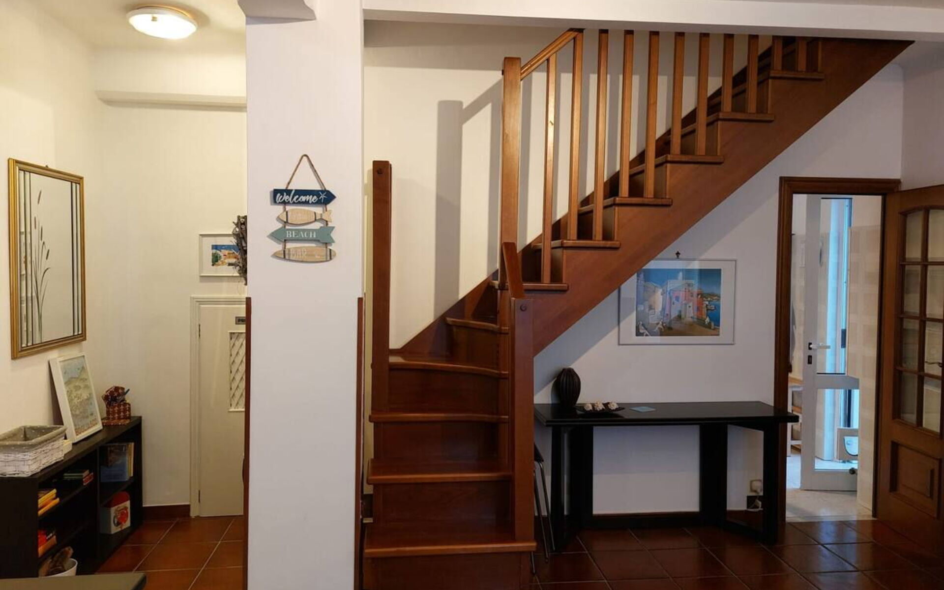 On the ground floor: a nice kitchen will be at your disposal, furnished with a dining table. Living room with double sofa bed. Bathroom with bath/shower.