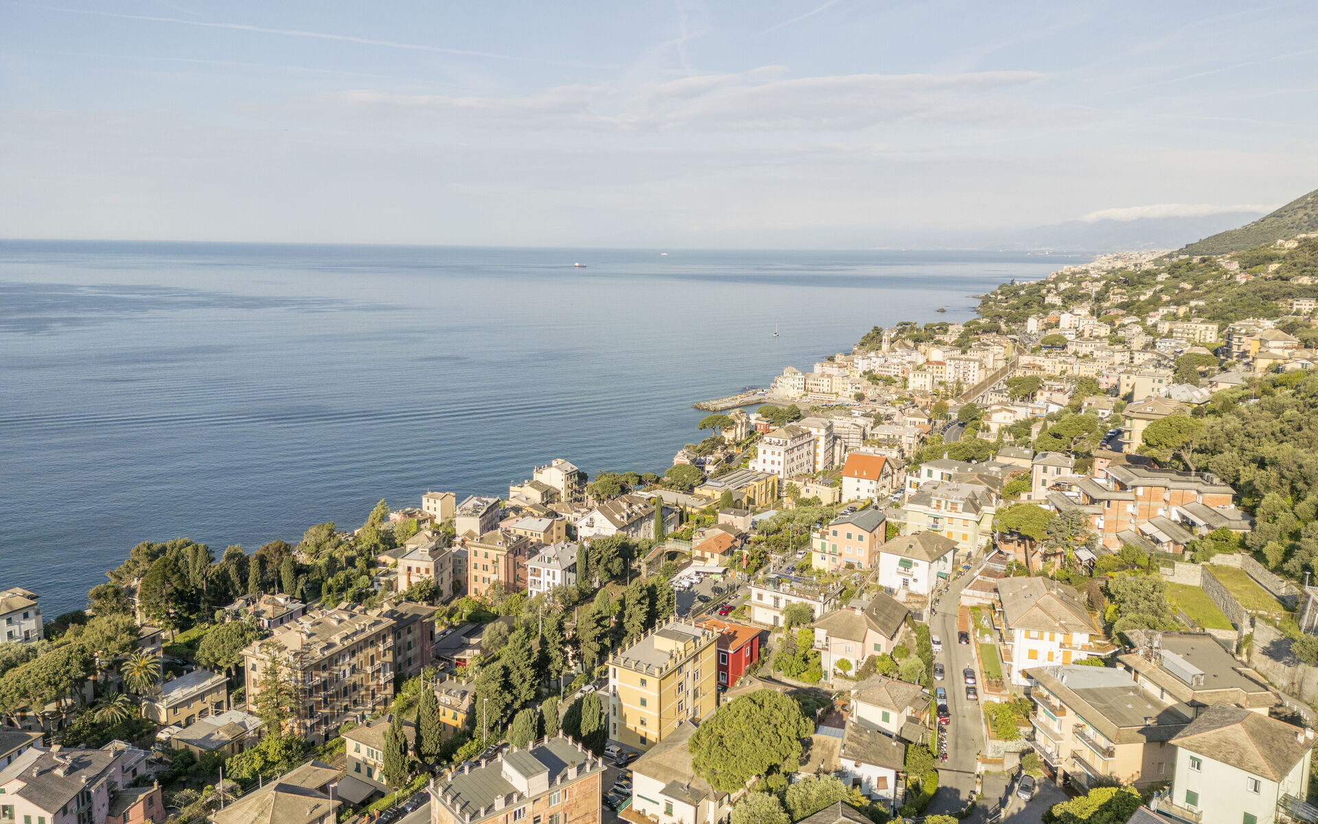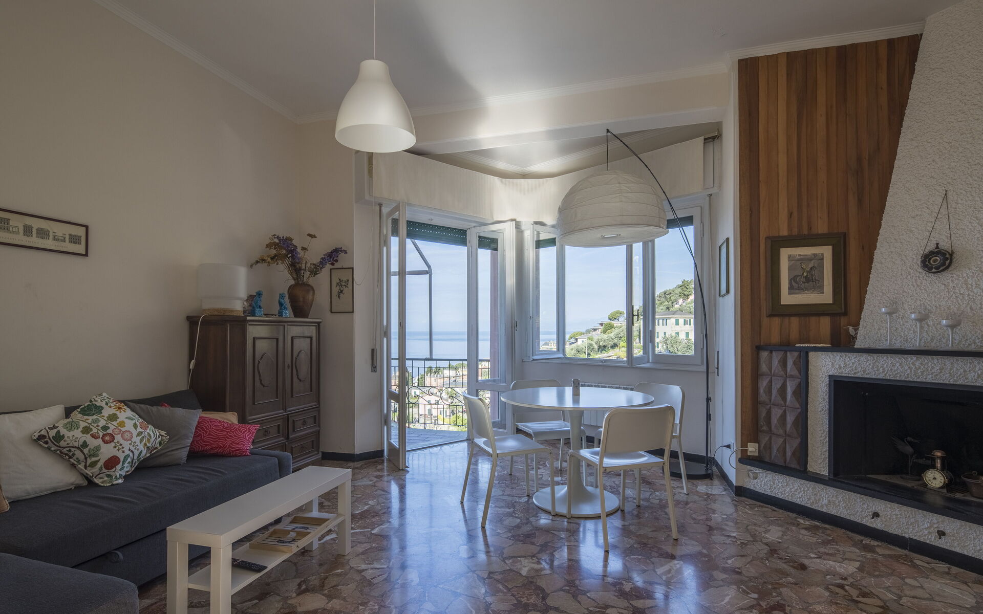 Flat with terrace with sea view located in the popular seaside resort of Pieve Ligure, only 15 km from the city of Genoa.