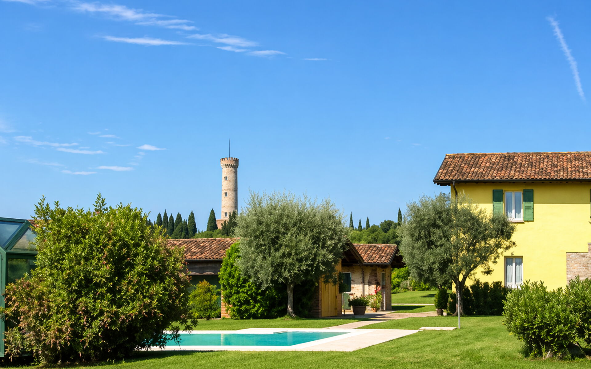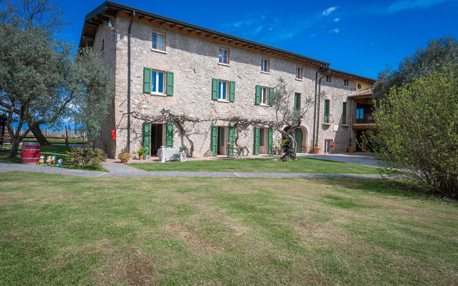 Located in the heart of the Lugana DOC wine region, the agriturismo is surrounded by vineyards and wineries, only 500 meters from the Sirmione motorway exit and close to Golf Chervò. Its strategic location allows easy access to Verona, Mantua, and the main attractions of Lake Garda, even by bicycle.