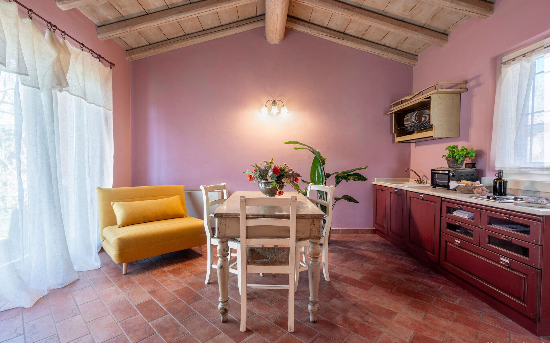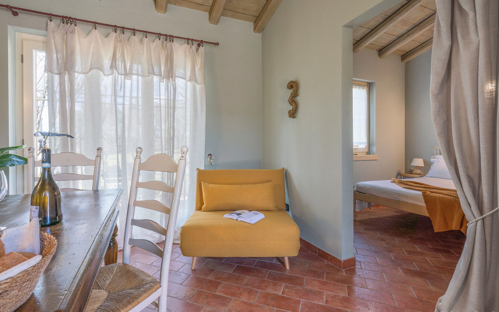 The accommodations are tastefully furnished in a rustic-modern style and include Wi-Fi, air conditioning, and fully equipped kitchens. Some apartments are also accessible to guests with reduced mobility thanks to an elevator.