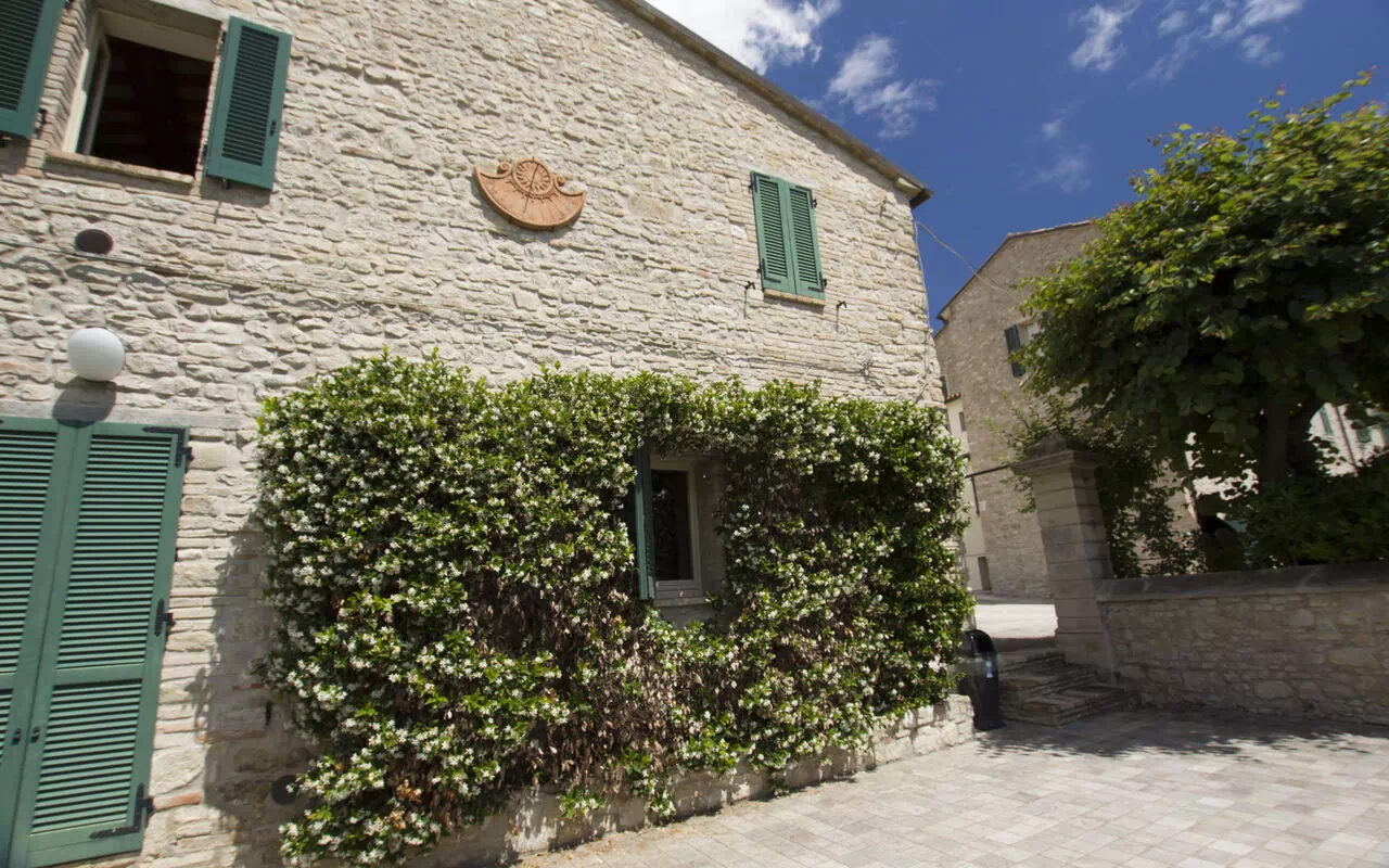 It is a stone villa that blends perfectly with the surrounding landscape of the famous "Balcony of the Marches" characterizing the city of Cingoli.