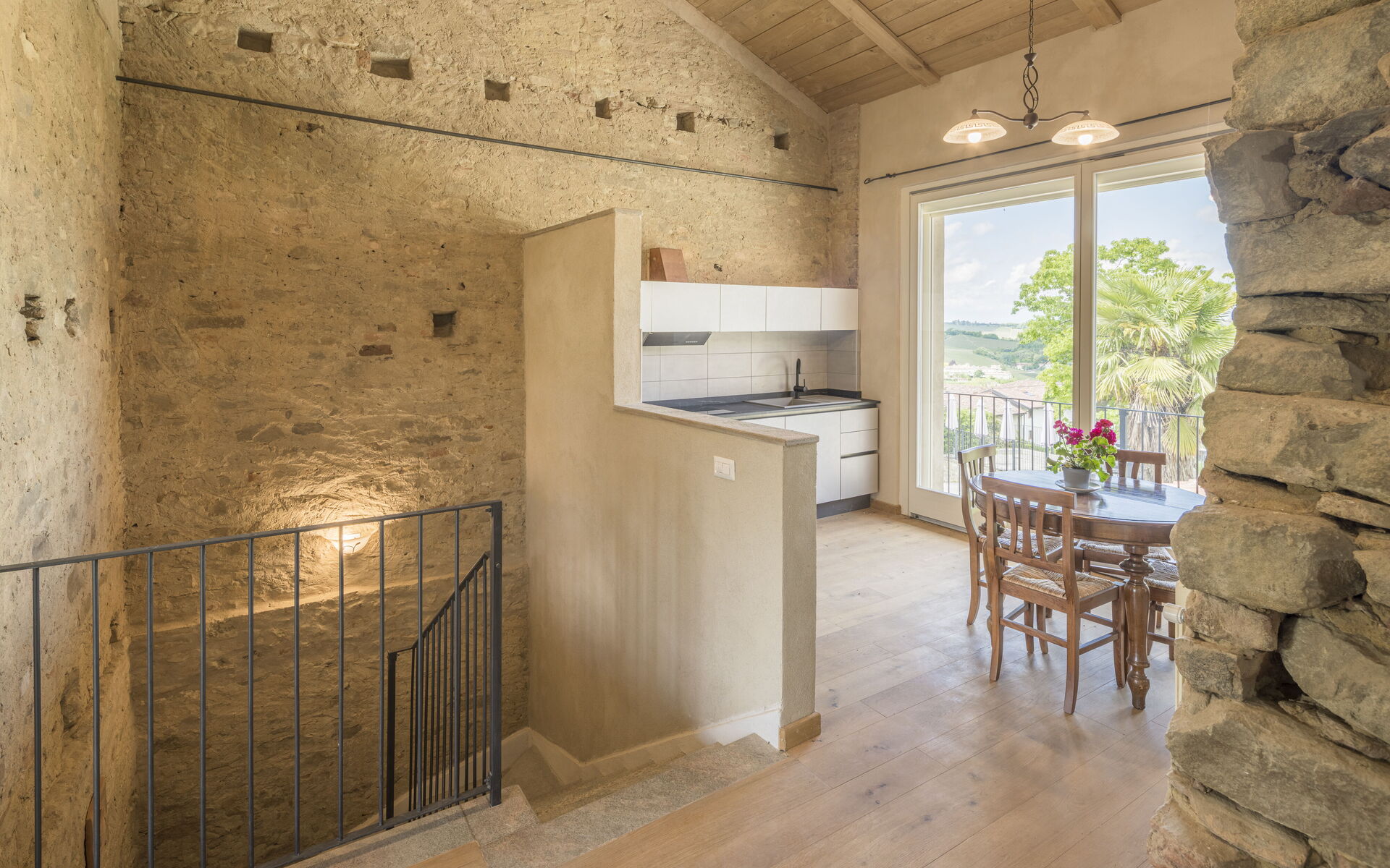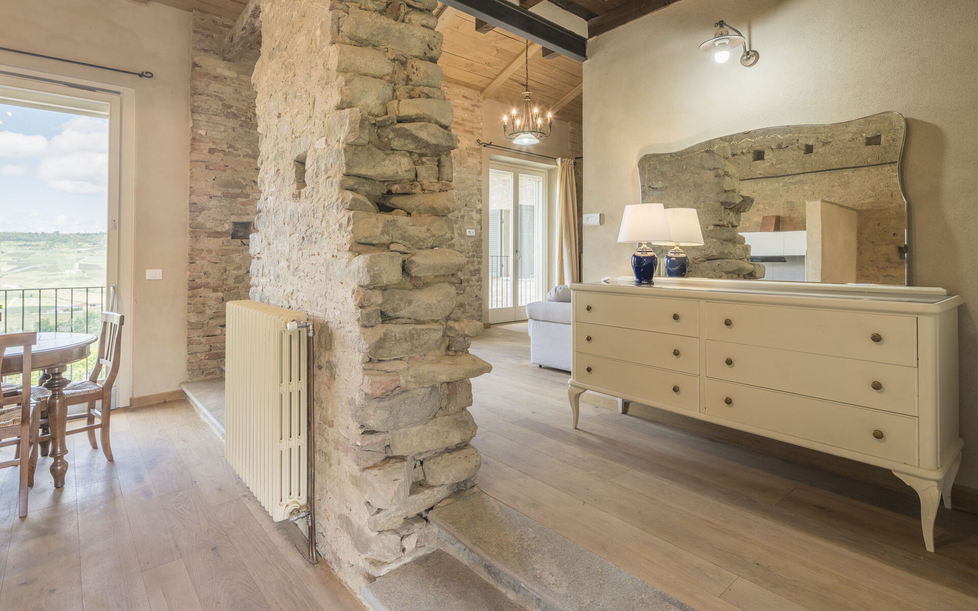 Monforte is a charming village located in the Langhe, one of Italy's most renowned wine-growing regions, in Piedmont. Here you will find these beautiful flats, renovated from an old farm building.