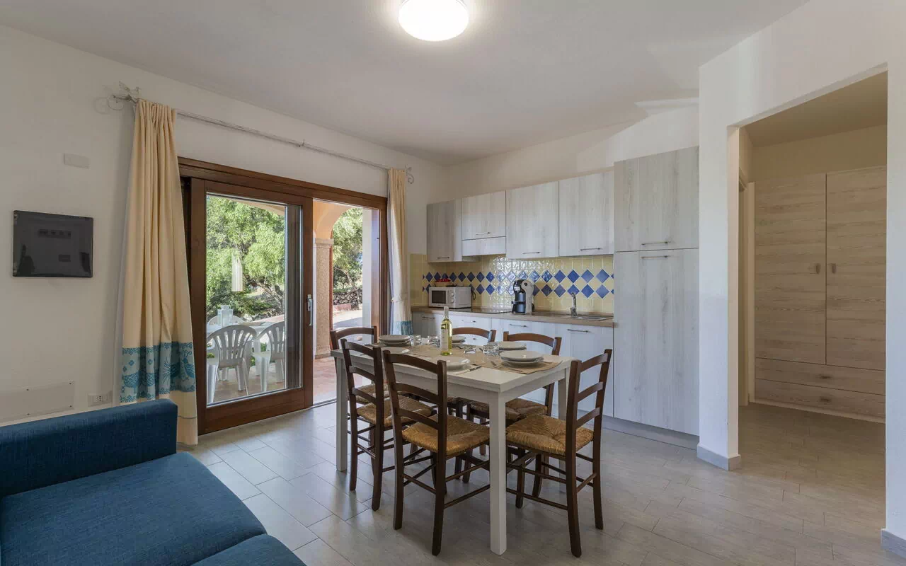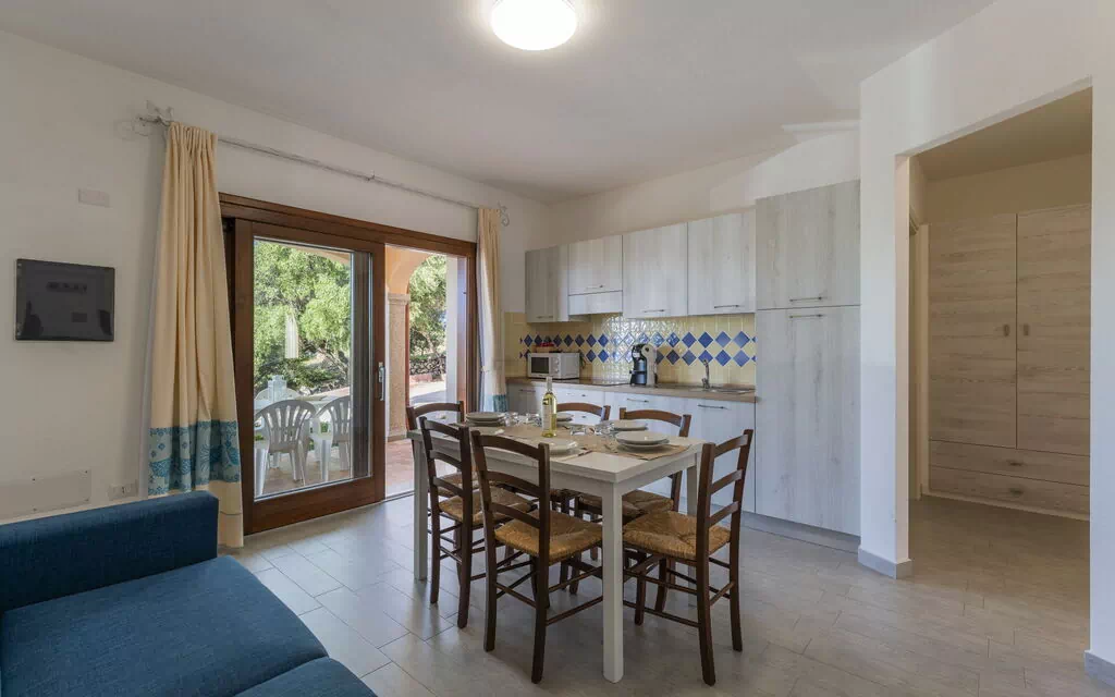 Inside, the flat has a living room with kitchenette and double sofa bed, double bedroom, bathroom with shower. Sea view.Air conditioning available in the living room, wifi internet. Equipped balcony or patio.Although the flats are of the same type, they may differ in terms of furnishings and equipment.There is a penalty of 50.00 for failure to clean the kitchenette and a further 50.00 for failure to dispose of waste. Kapselkaffeemaschine (es dürfen nur die an der Rezeption verkauften Kapseln verwendet werden)