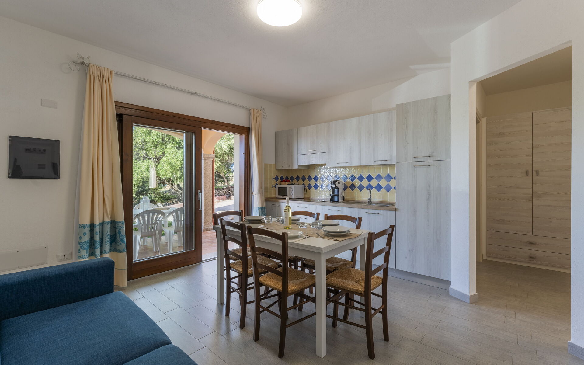 Klimatizacija, Dobro opremljena kuhinja, Sofa na razvlačenje za dvije osobe, Zamrzivač, Frižider, WiFi internet, Aparat za kavu (talijanski), Mikrovalna pećnica, Blagovaonski stol, televizija