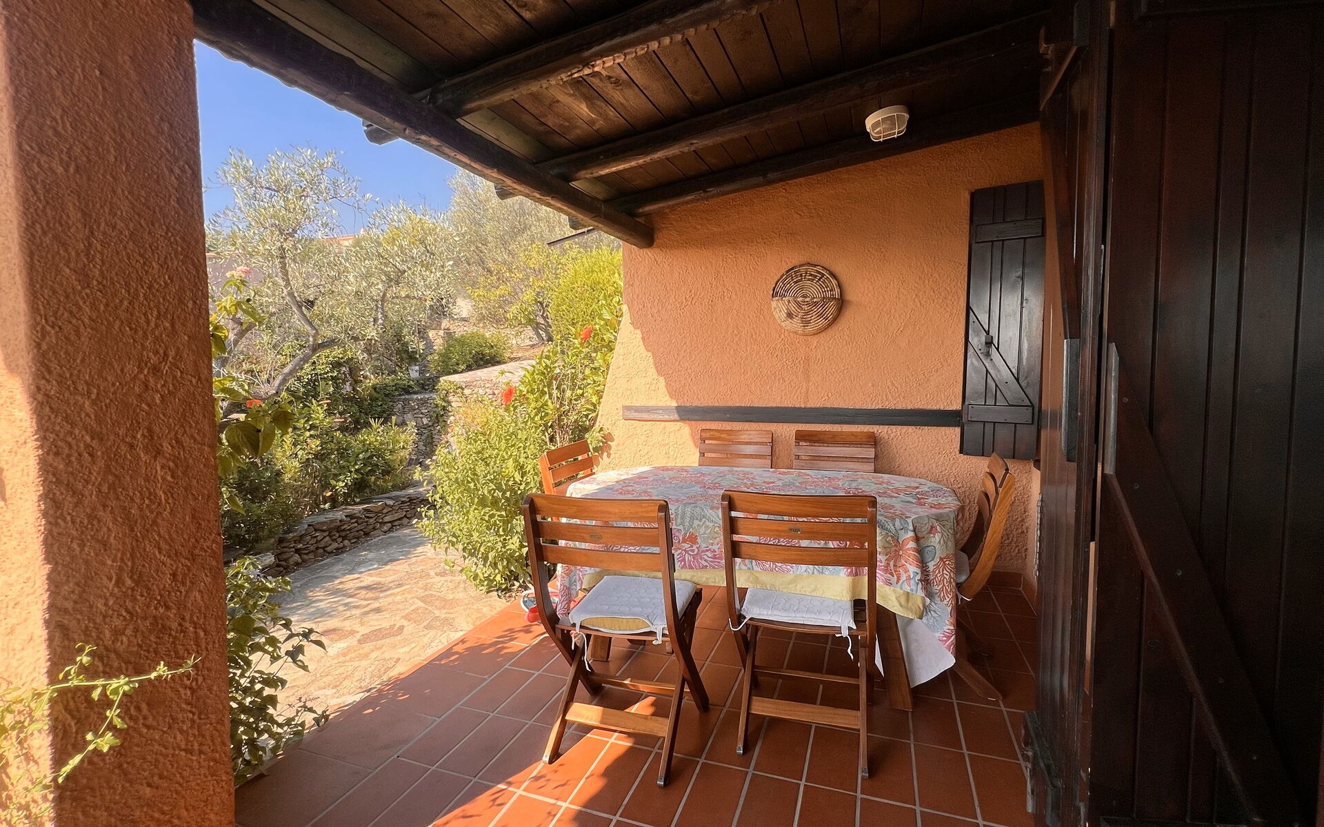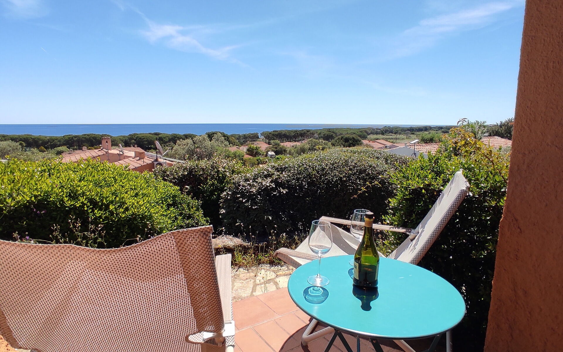 Inside, the villa has a bright living room with comfortable sofas, a separate, well-equipped kitchen with oven, microwave and dishwasher. The three bedrooms are two doubles and one with bunk beds, comfortably accommodating up to six people. One of the double bedrooms has an en suite bathroom for maximum privacy. Another bathroom is present