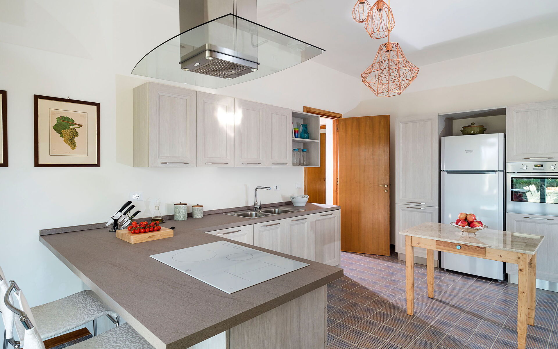 Klimatizacija, Kamin, Dobro opremljena kuhinja, Željezo, Pećnica, Zamrzivač, Frižider, Internet, WiFi internet, Perilica posuđa, Aparat za kavu (talijanski), Američki aparat za kavu, Mikrovalna pećnica, Ploča za kuhanje, Visoka stolica, Toster, Izlaz na terasu