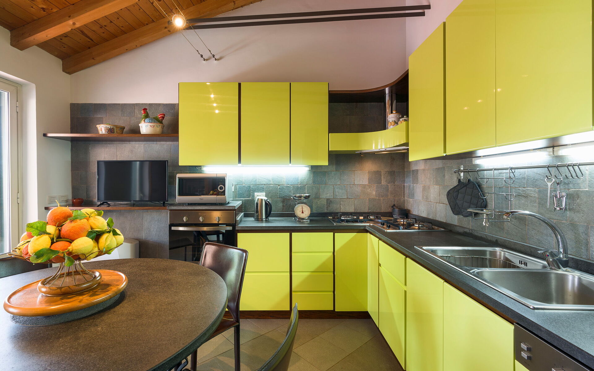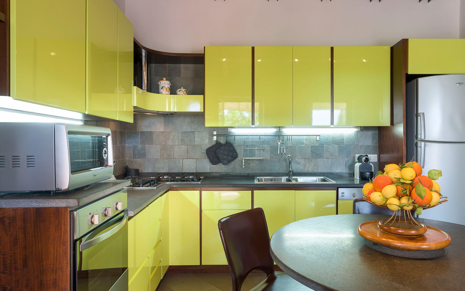 Klimatizacija, Dobro opremljena kuhinja, Pećnica, Zamrzivač, Frižider, Internet, WiFi internet, Perilica posuđa, Aparat za kavu (talijanski), Američki aparat za kavu, Mikrovalna pećnica, Ploča za kuhanje, Visoka stolica, Toster, Detektor dima