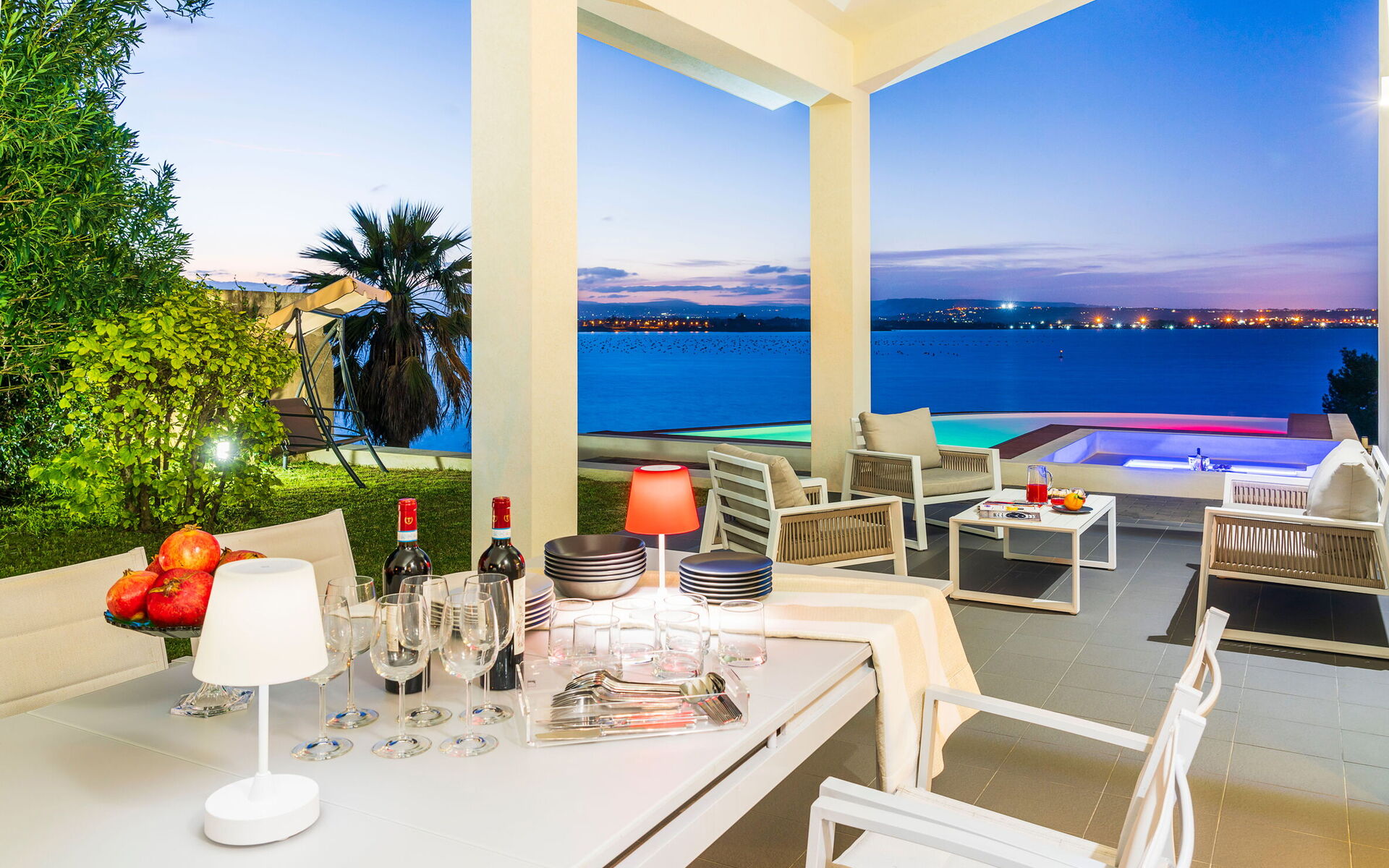 It is located along one of the most beautiful stretches of coast in eastern Sicily. It offers a breathtaking view of the bay of Syracuse. Its privileged position allows guests to enjoy a unique and relaxing experience and easily reach the fascinating baroque cities of Val di Noto, the nature reserves of Vendicari, Pantalica and Cassibile, as well as renowned destinations such as Taormina and the Etna Park.