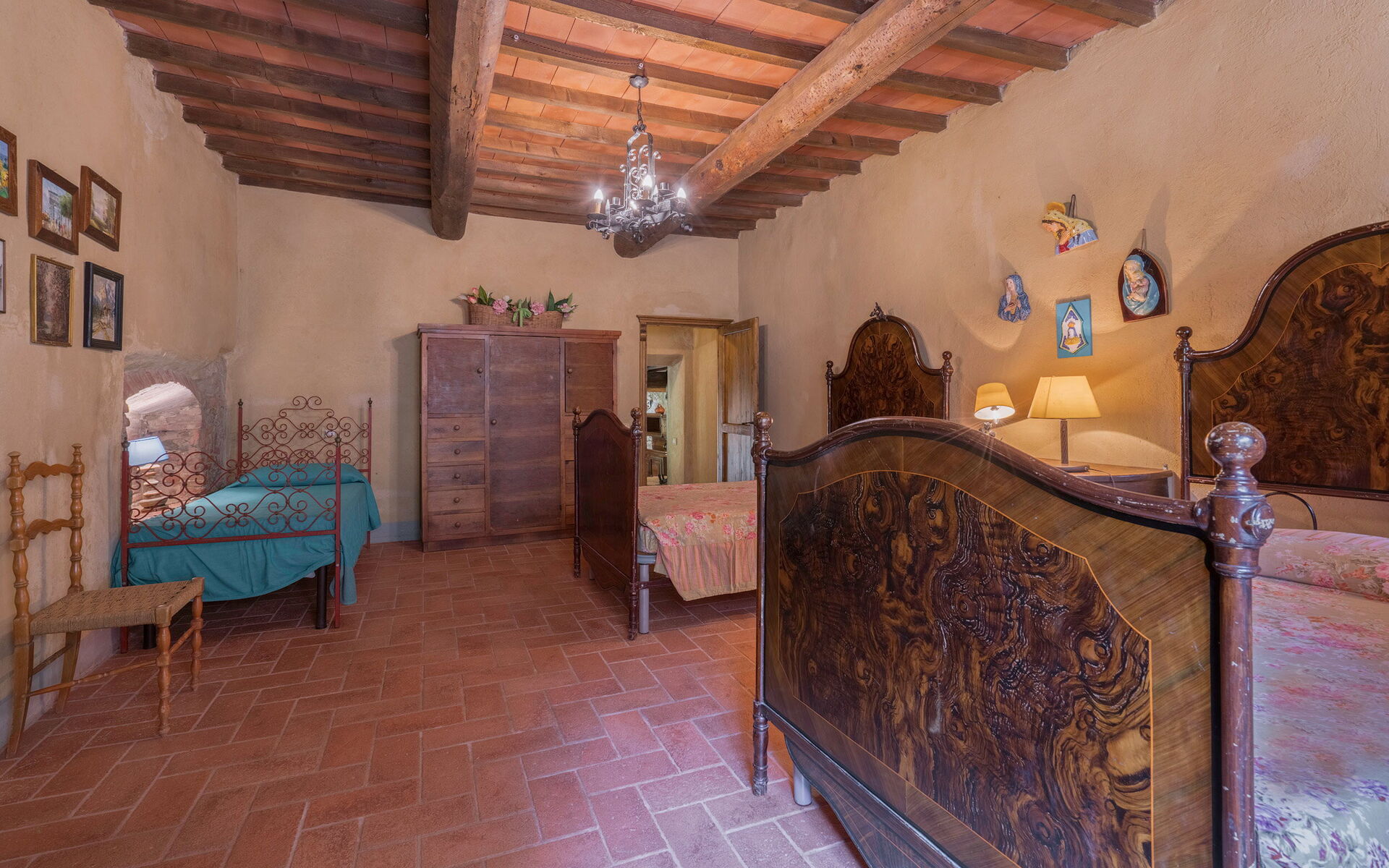 You go up 6 steps and find 1 room with 3 beds including 2 French with inside bathroom complete with shower.