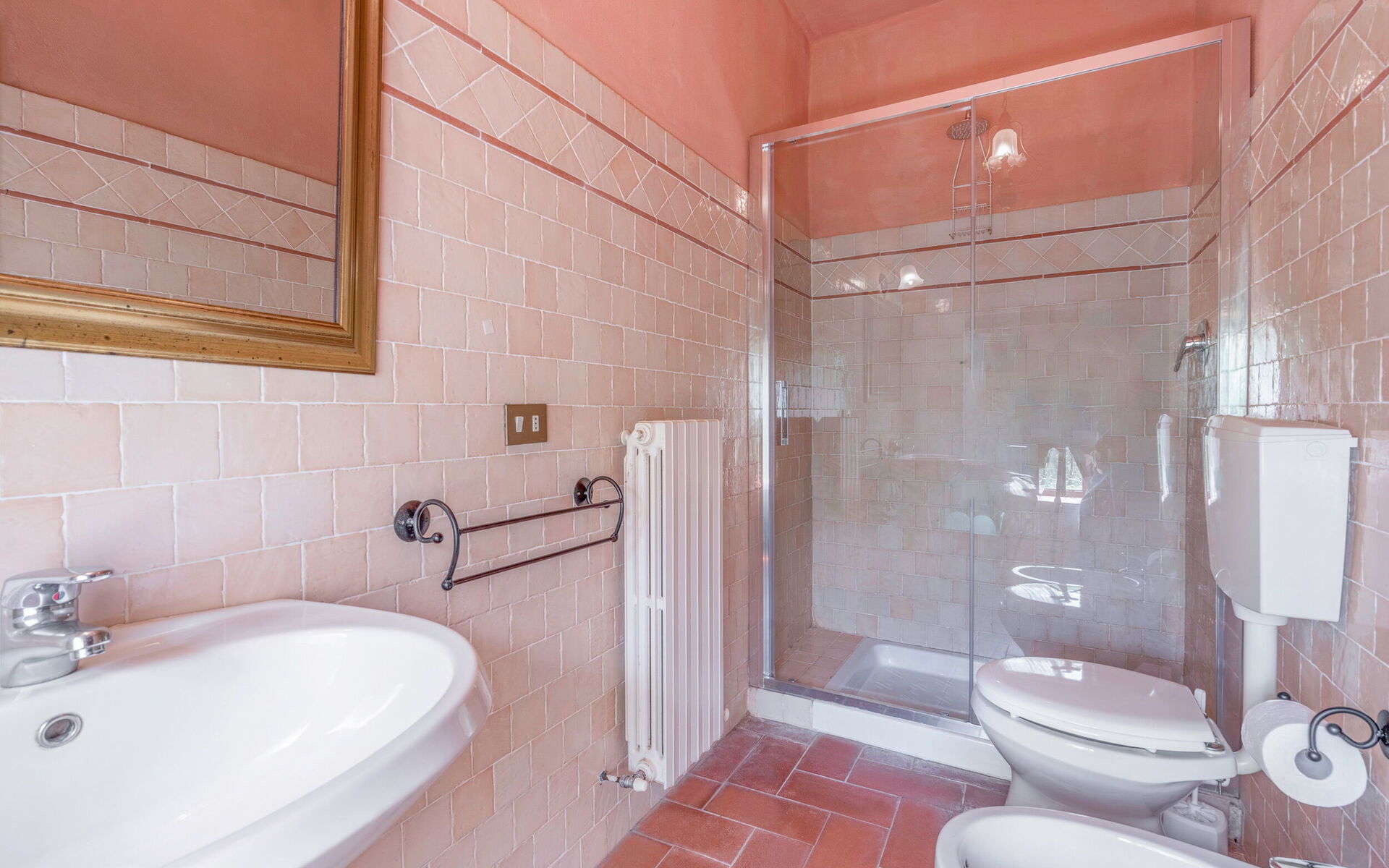 Going down 8 steps from the main hall, we find 1 double bedroom with a full bathroom with shower inside and 1 2-bedroom with a bathroom with toilet, sink and shower inside.