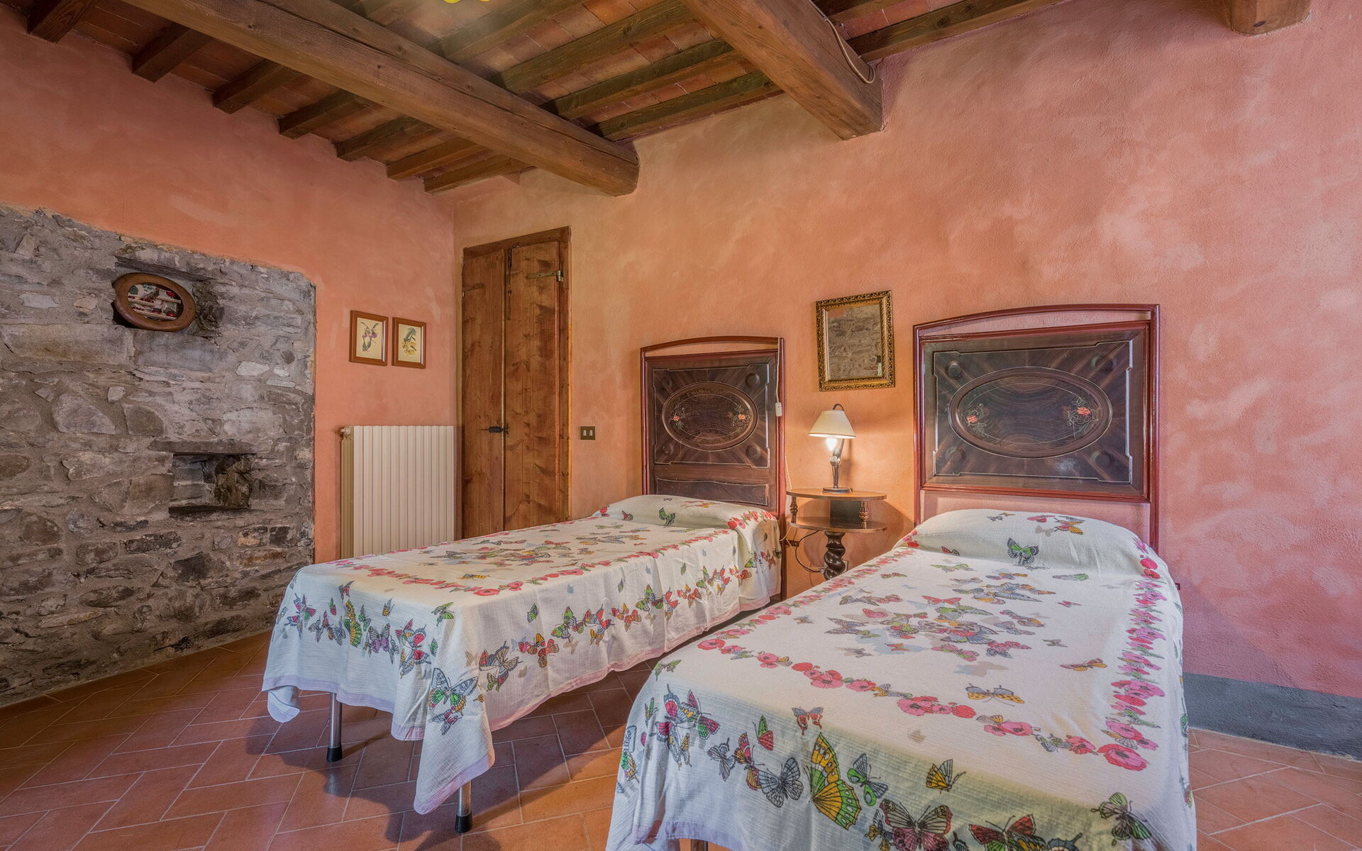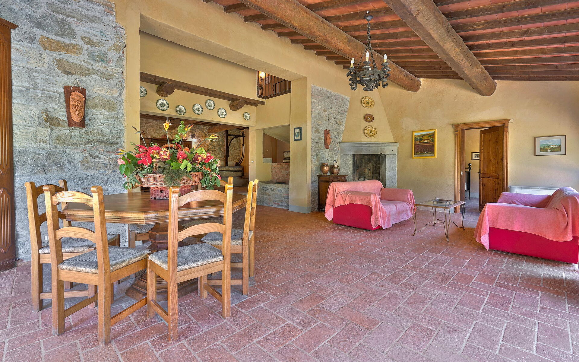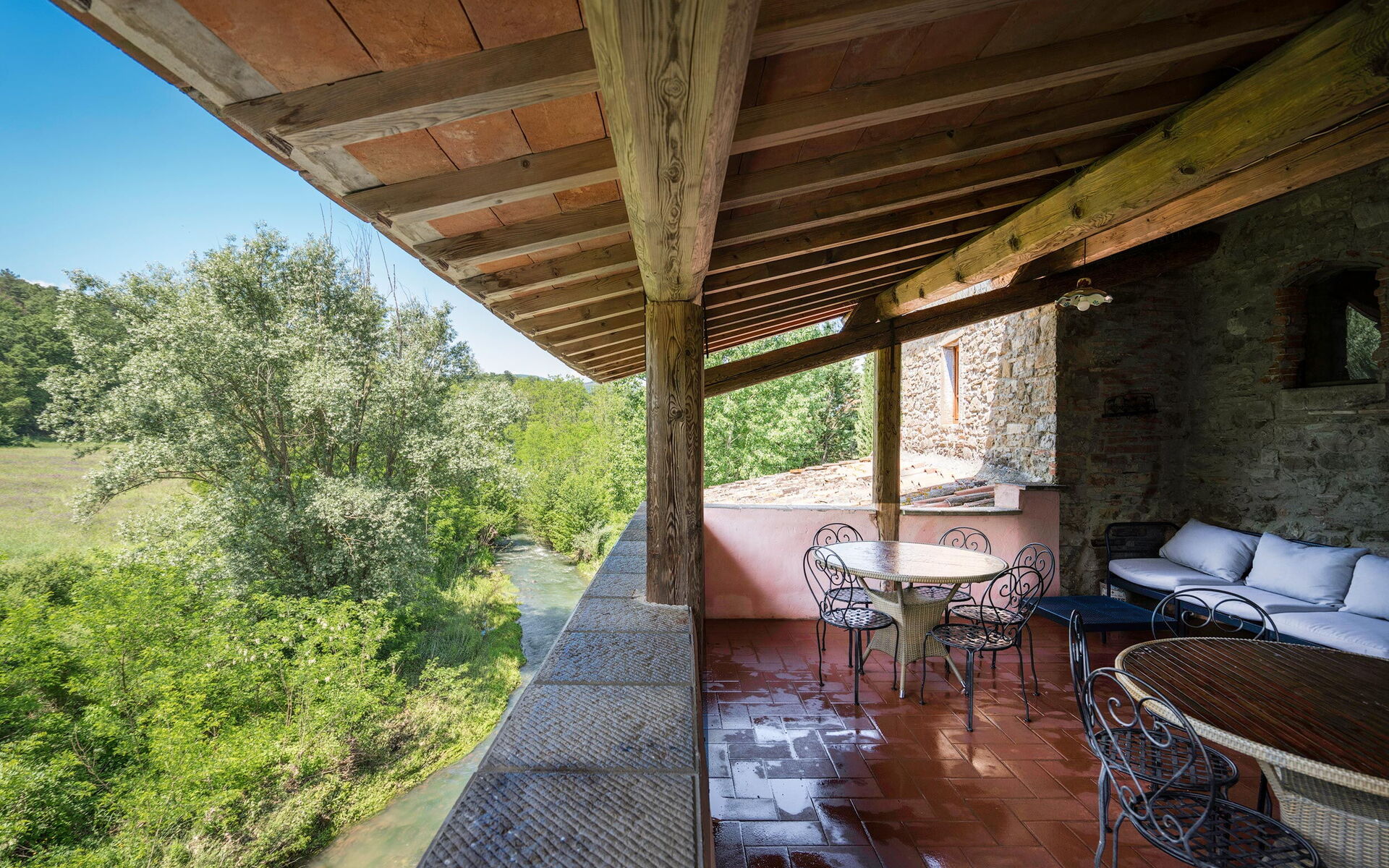 The first two flats are in the old Mill dating back to 1100. While the New Mill (the one that still contains the millstones) dates back to 1800. The Old Mill used the stream, which now runs alongside and along the property, to produce flour for the entire area. It was a mill belonging to the Benedictine Abbey of Badia Agnano. Where the stream flowed, the swimming pool was created.