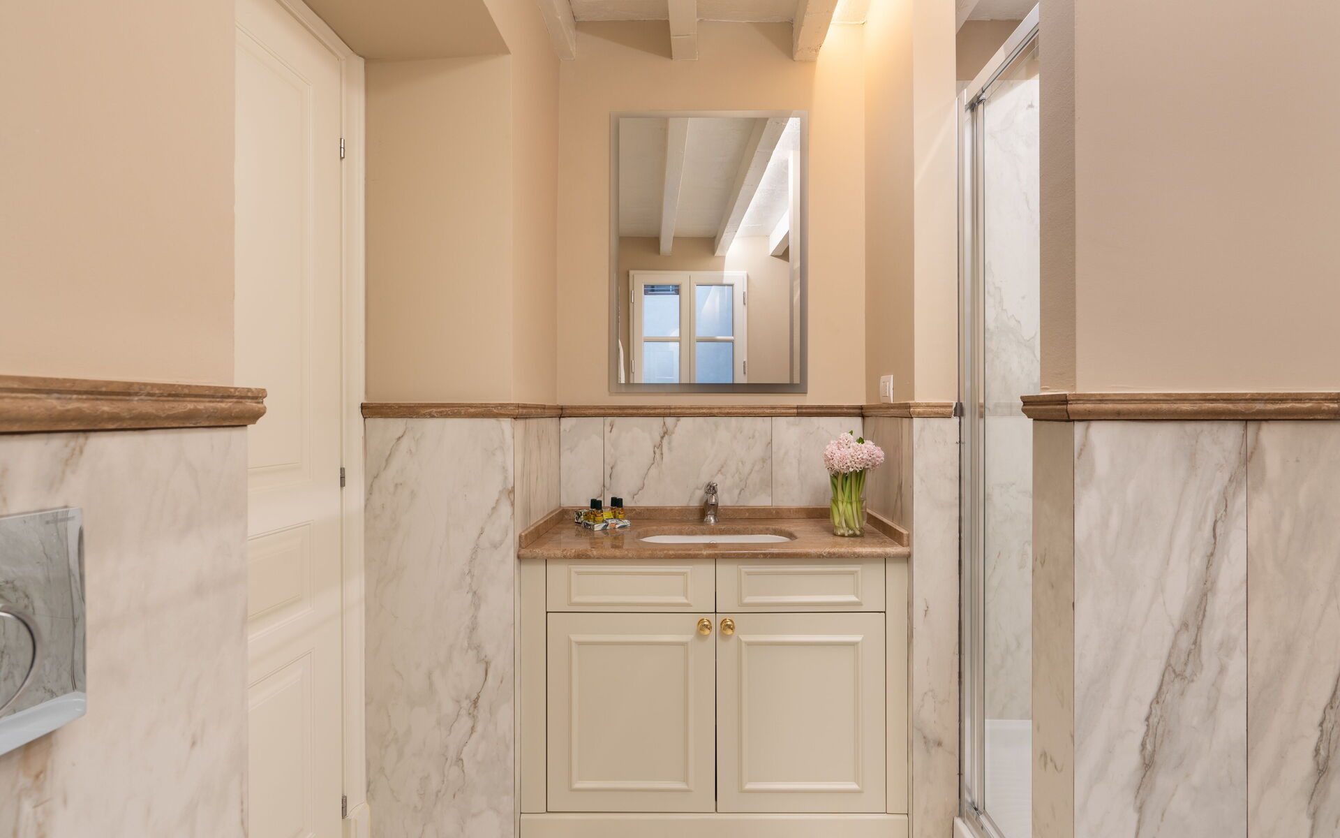 Outdoor spaces include a beautiful terrace and an inner courtyard in the beating heart of Florence. For those who wish to stay in shape, a private gym complete with state-of-the-art Technogym machines is available.