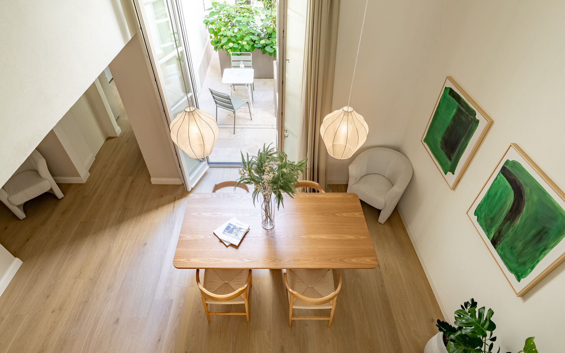 Two-level apartment consisting of a bright living room with small equipped garden, kitchen, loft with sofa bed, double bedroom, ensuite bathroom
