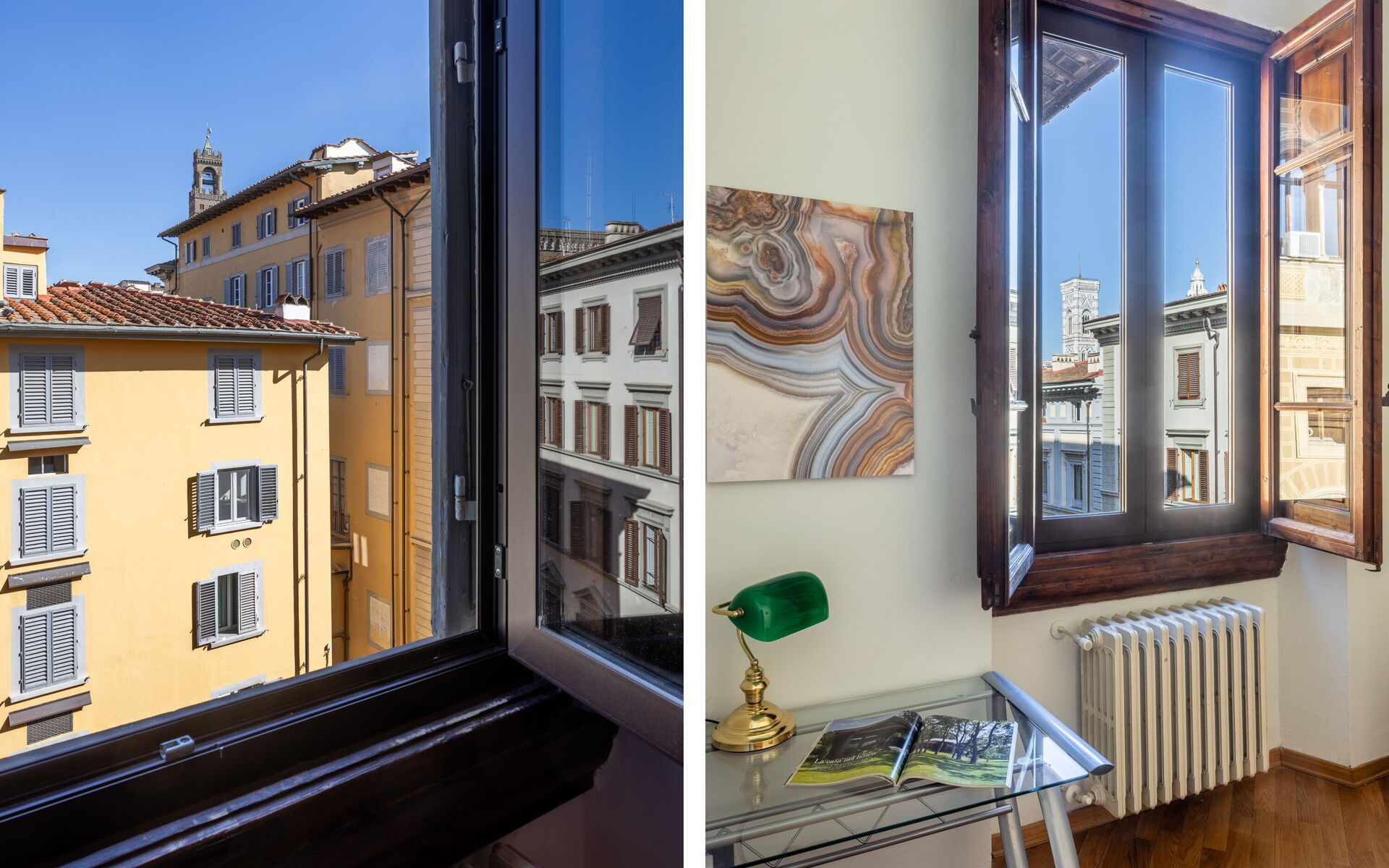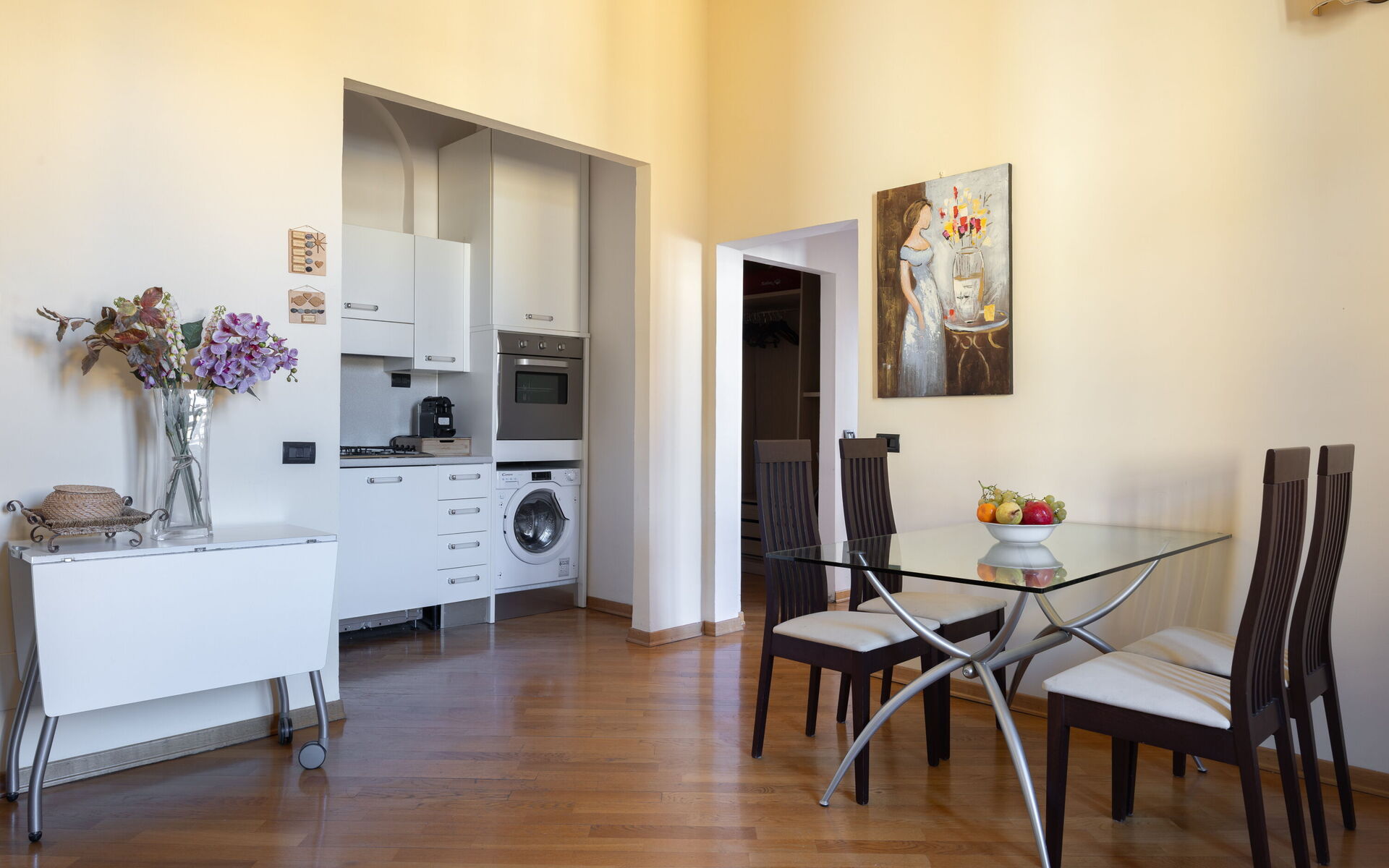 The apartment is just a short walk from all the main attractions of Florence: Cathedral of Santa Maria del Fiore – 5 minutes, Uffizi Gallery – 7 minutes, Ponte Vecchio – 8 minutes, Piazza della Signoria and Palazzo Vecchio – 6 minutes, Rose Garden and Piazzale Michelangelo – 15 minutes. You can also easily reach the city’s most characteristic neighborhoods, such as Santa Croce and San Lorenzo, full of artisan workshops, markets, and traditional restaurants.