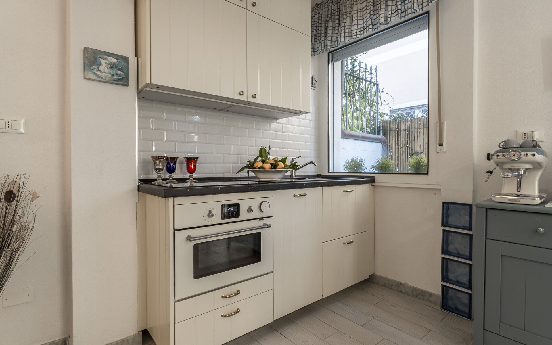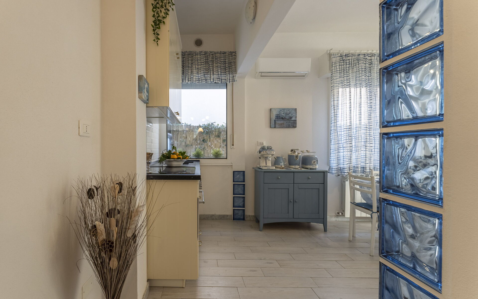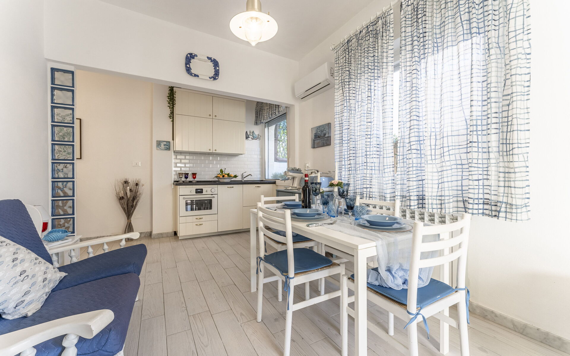 At the entrance we find the living room equipped with a kitchenette with all the necessary utensils such as toaster, coffee machine, oven, dishwasher. The living room is furnished with a comfortable sofa, television and table for dining together.