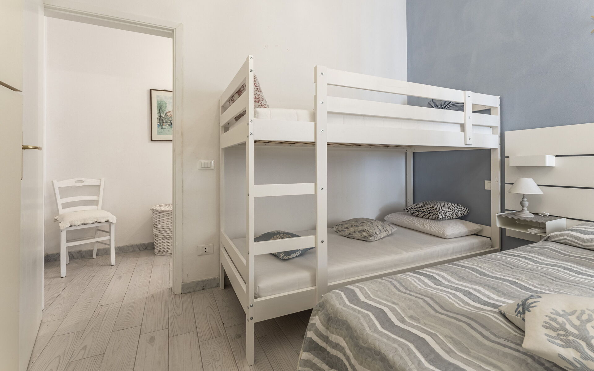 The sleeping area has a double bedroom with 4 beds: a double bed and a bunk bed.