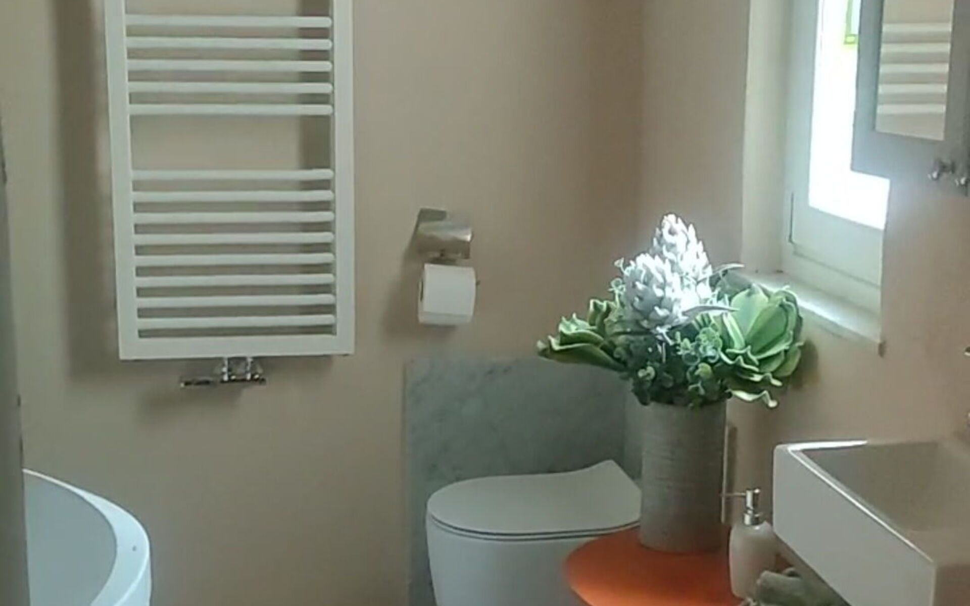 double bedroom; twin (or double) bedroom; bathroom with shower (wc, bidet, sink); laundry with washing machine, tumble dryer, iron and ironing board, sink.