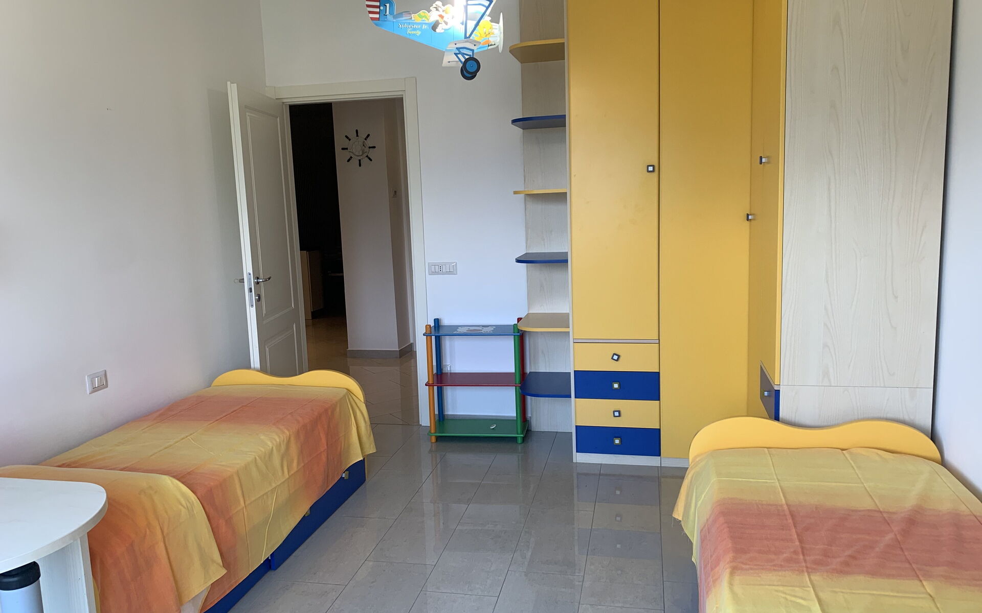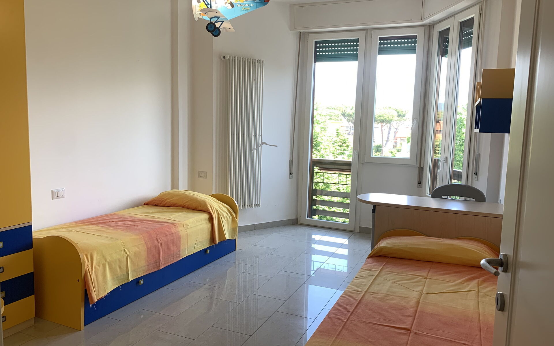 1 bedroom with double bed, 1 bedroom with three single beds.