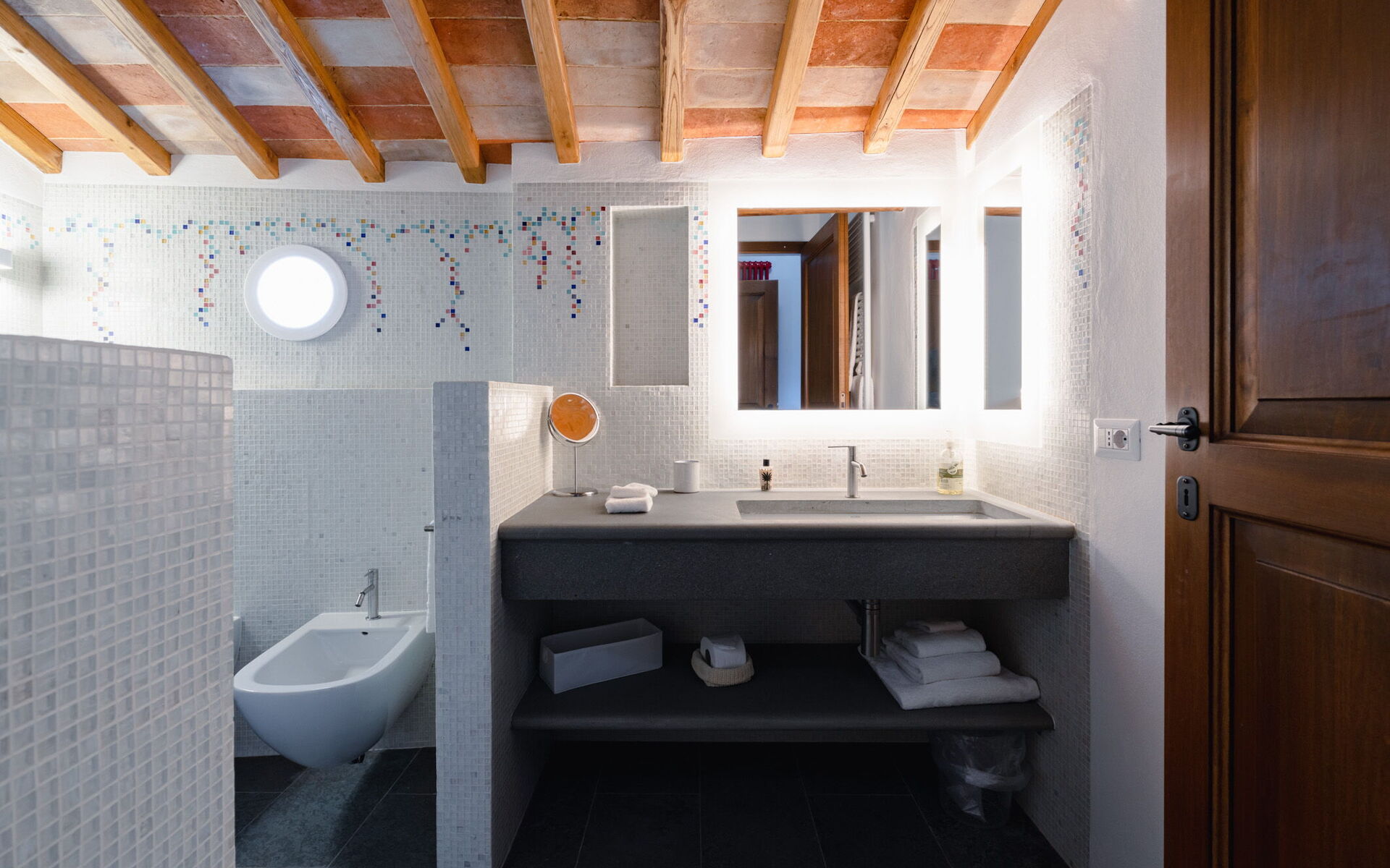 Guests also have access to a separate utility area with washing machine and dryer, ensuring complete autonomy even for longer stays.