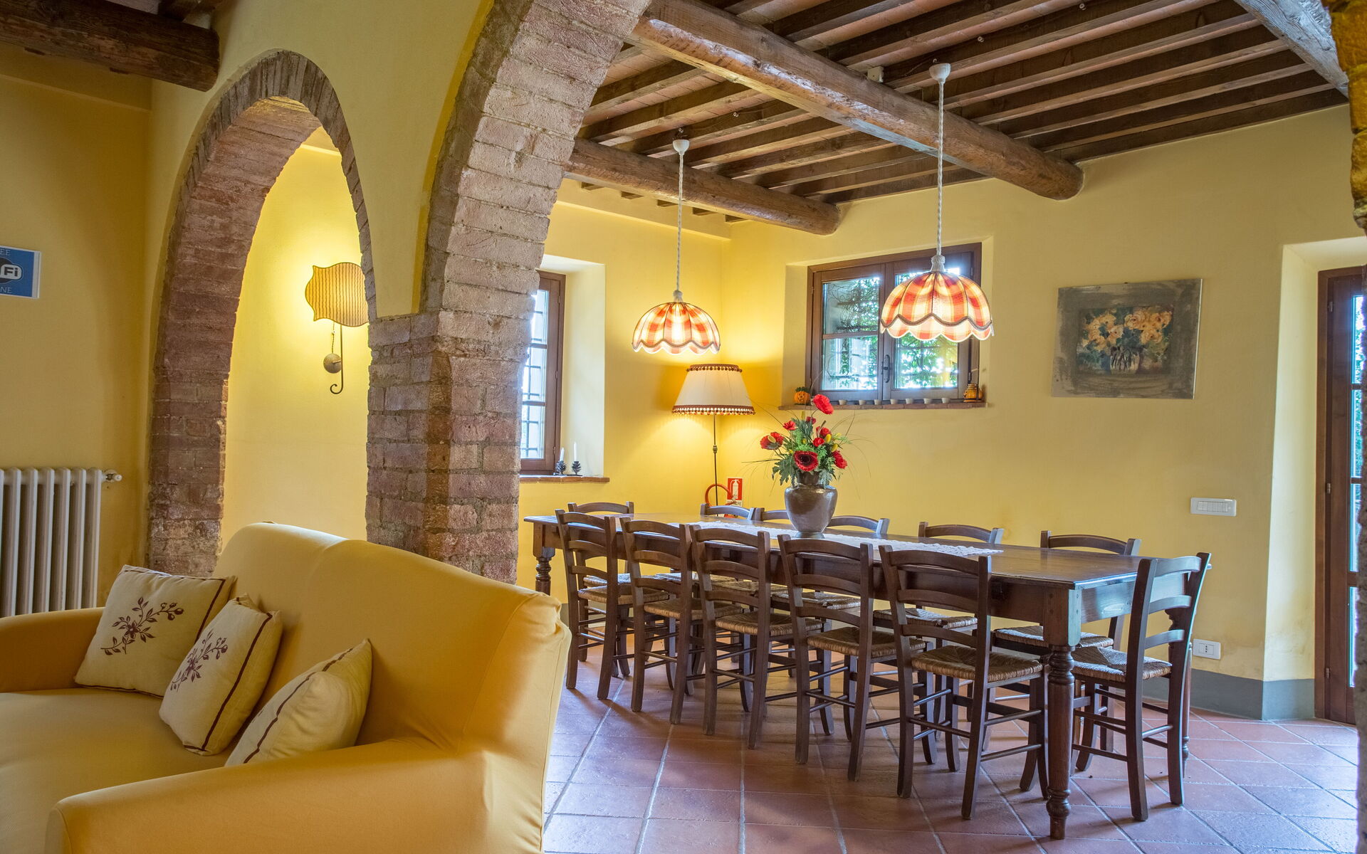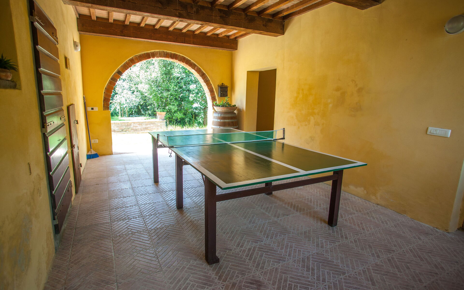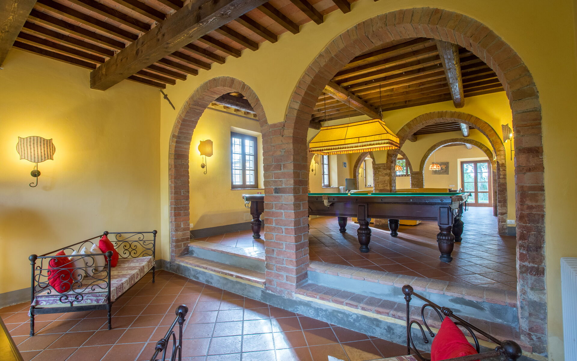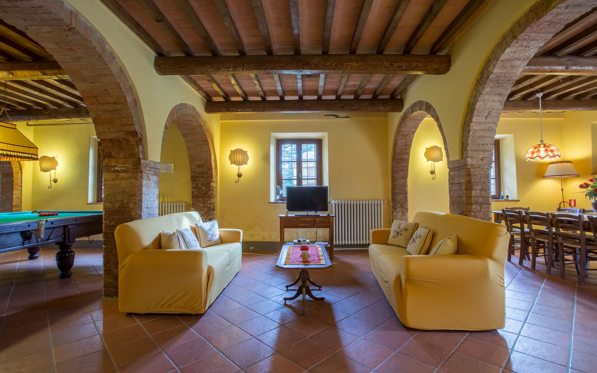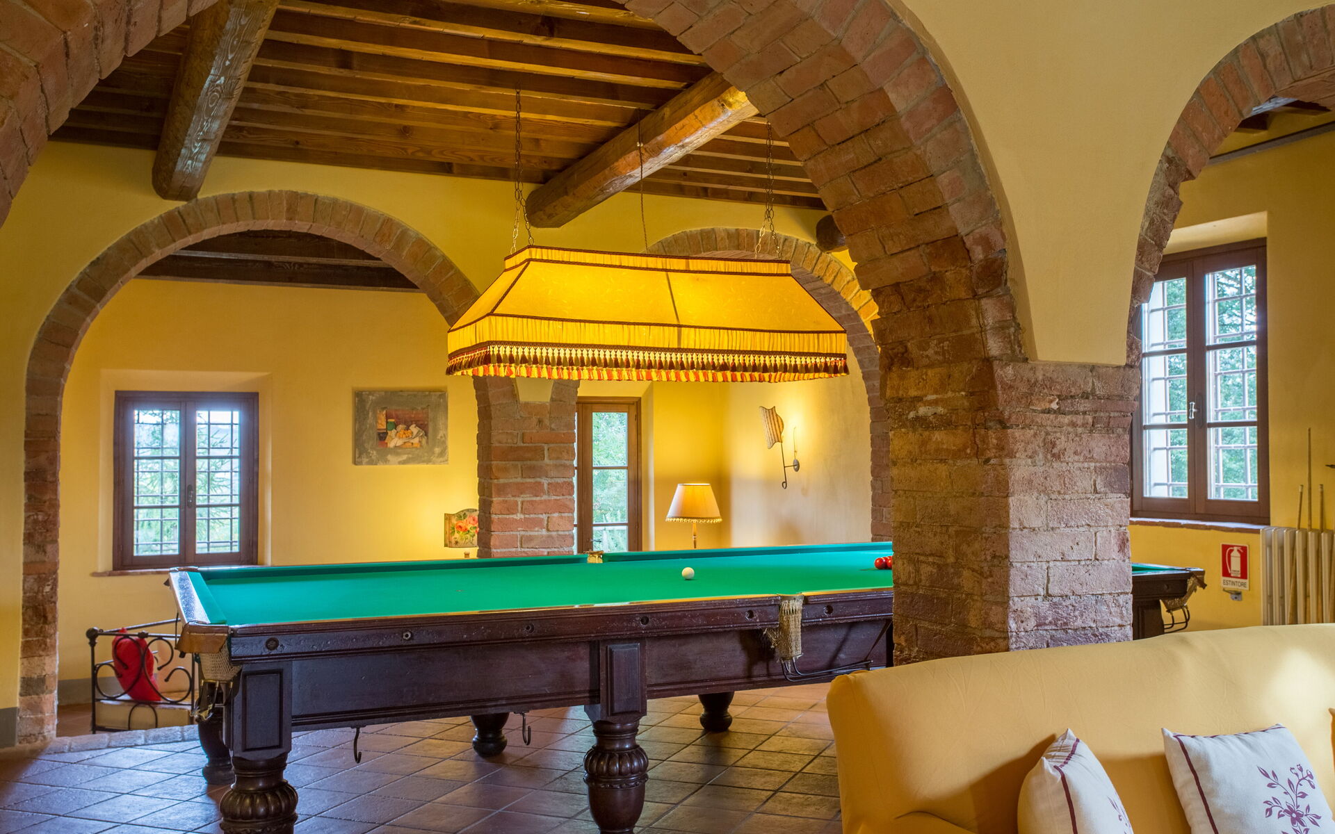 On the ground floor: kitchen (stove, oven, refrigerator, toaster, kettle, microwave, dishwasher, washing machine) with separate dining room; open-space with living room (fireplace, satellite TV, DVD) dining room with large table and billiard area; 1 bathroom with shower (toilet / bidet).
