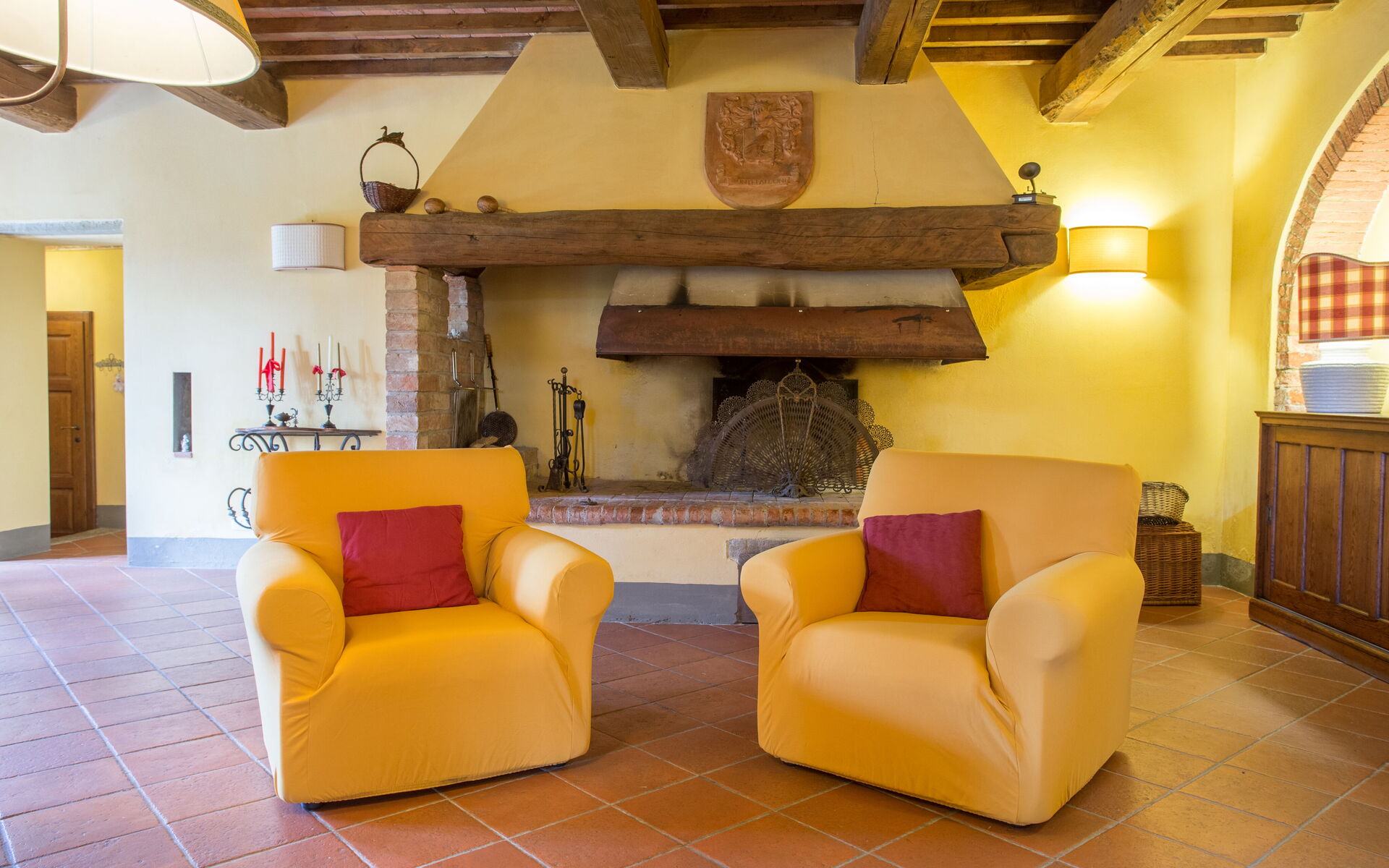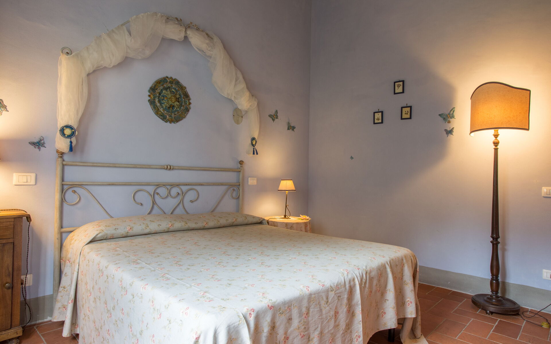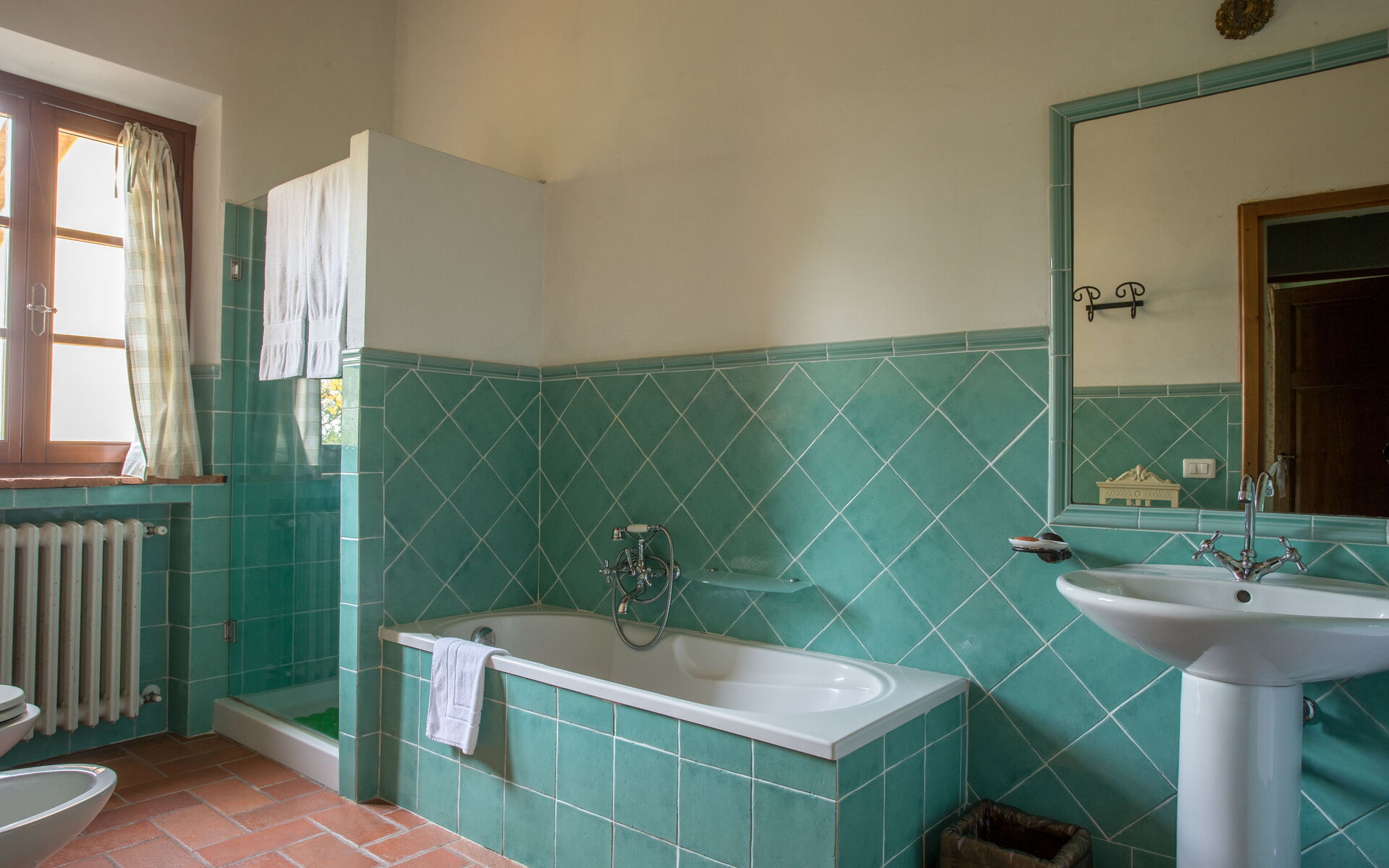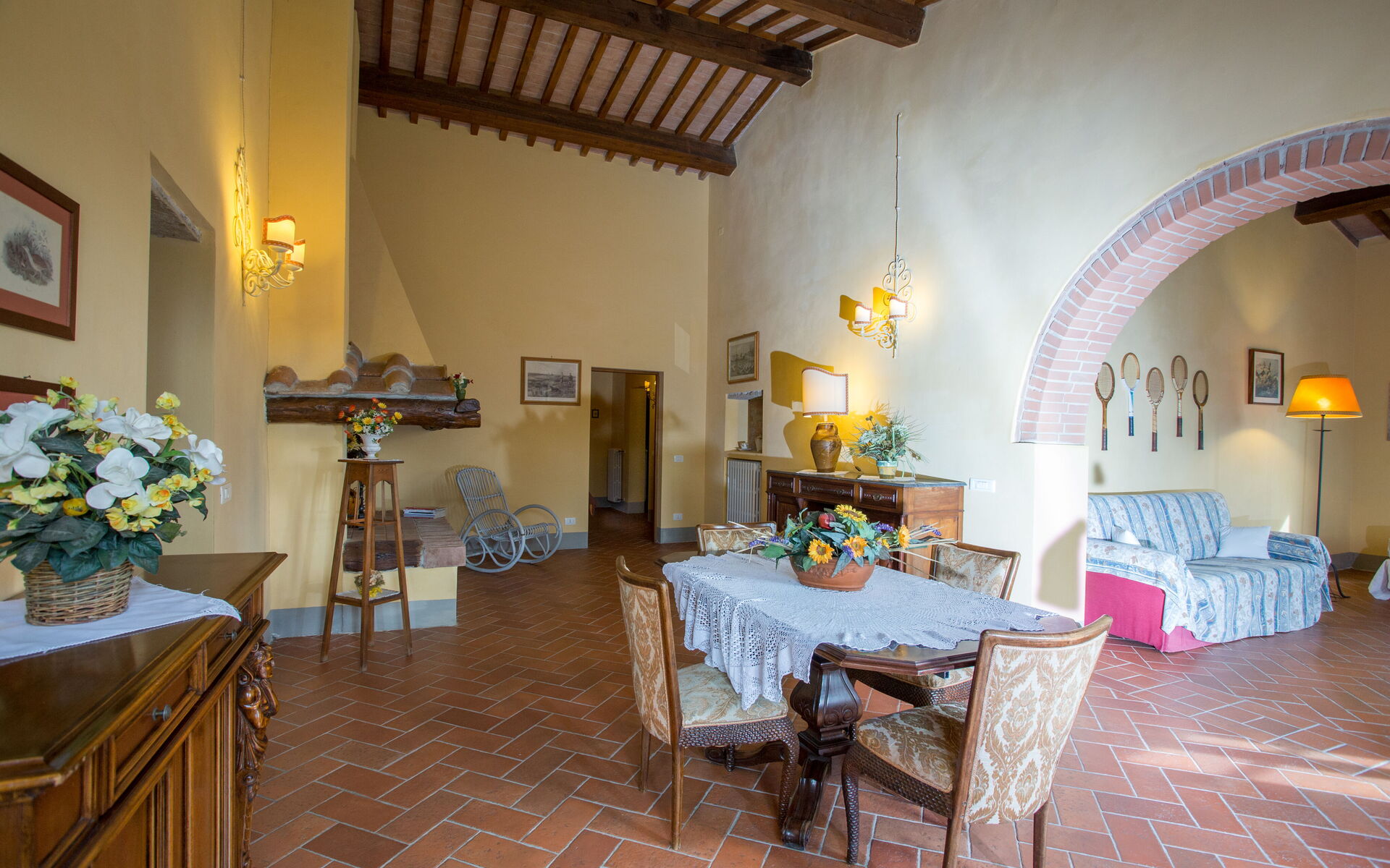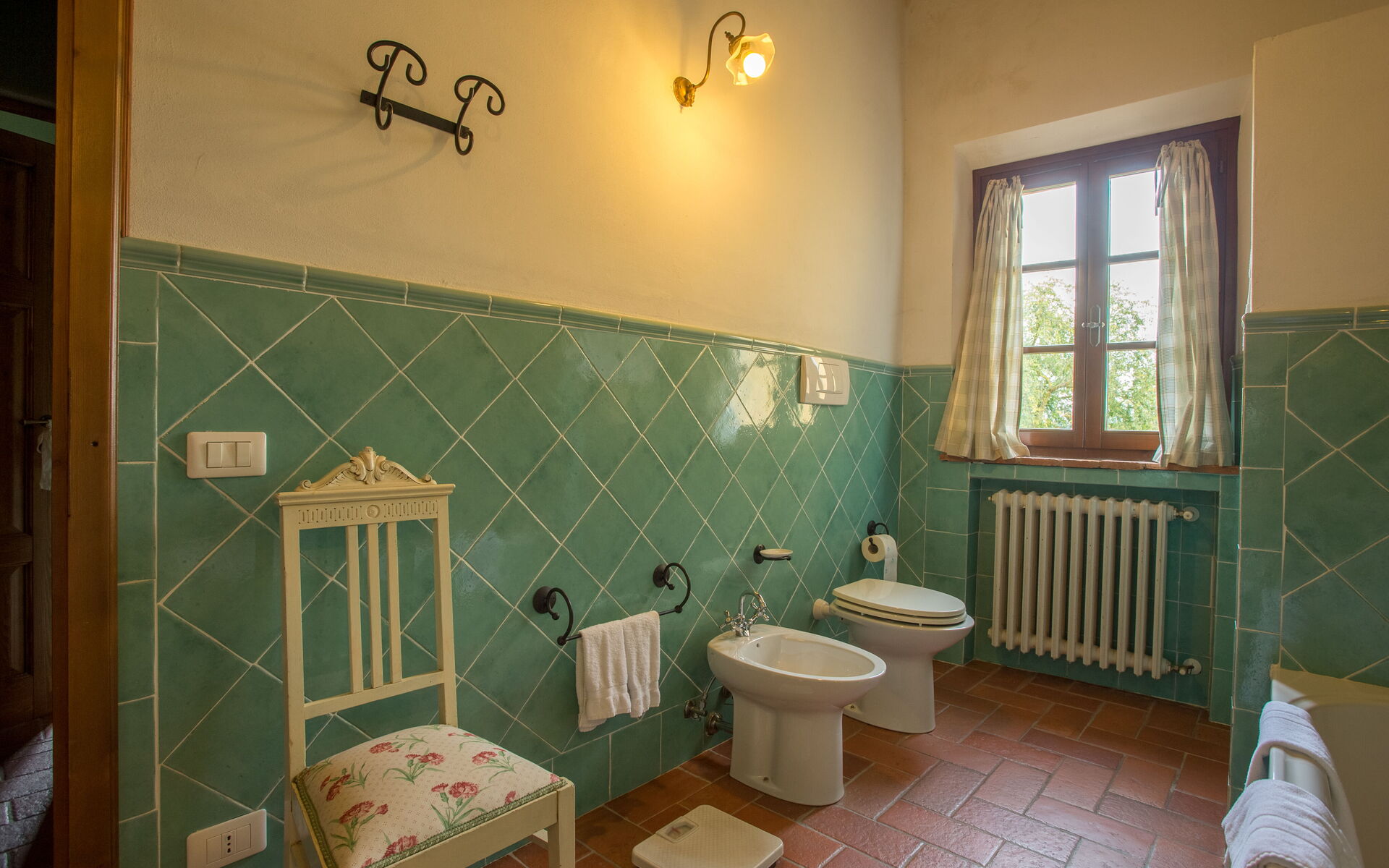 On the first floor: living room with fireplace; 1 double bedroom with bathroom with shower (wc / bidet); 1 double bedroom; 3 double bedrooms; 1 single room; 1 bathroom with tub and shower (toilet / bidet); 1 bathroom with shower (toilet / bidet).