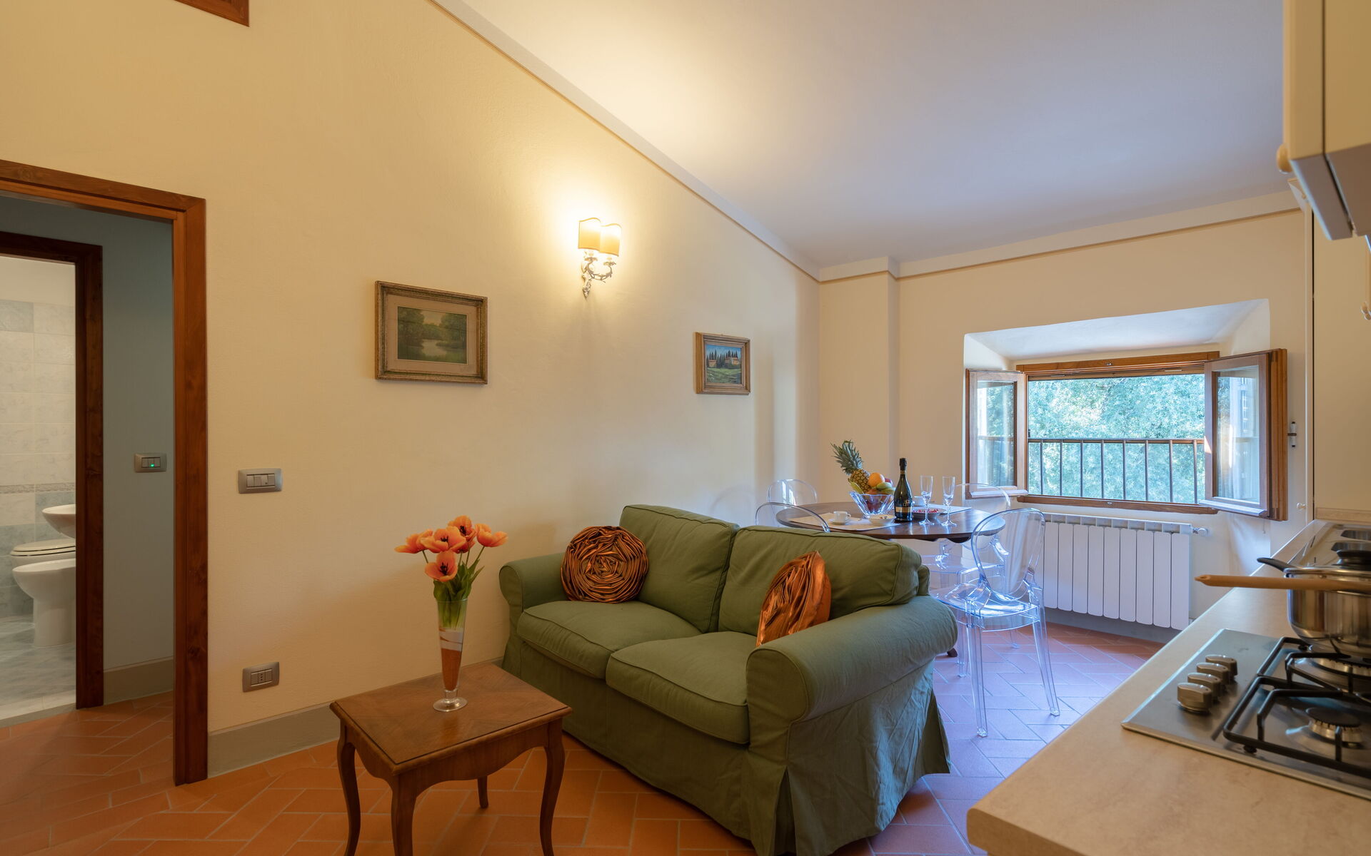 The Orchidea e Tulipano apartments have a double sofa bed in the living room (extra to be paid on the spot). The twin bedded rooms on request can be prepared with a double bed.