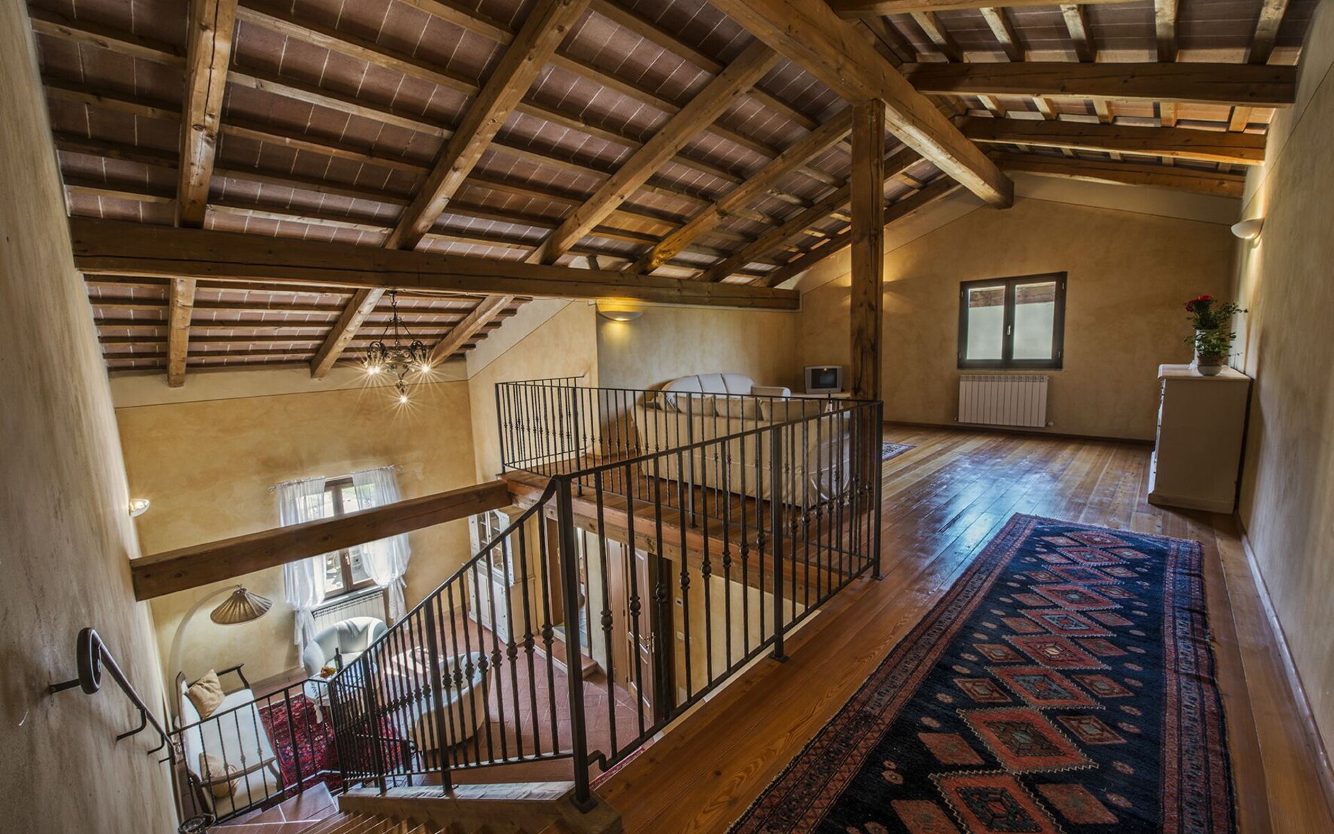 Terracotta floors, brick arches, stone stairs and exposed beams are the characterizing elements. The lime-based colors are conceived in a harmonious way without giving rise to drastic changes of scene, creating a single common thread throughout the house.