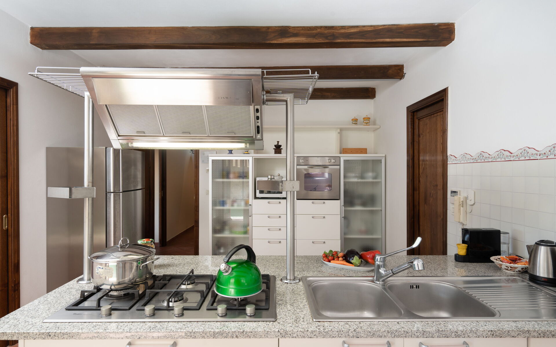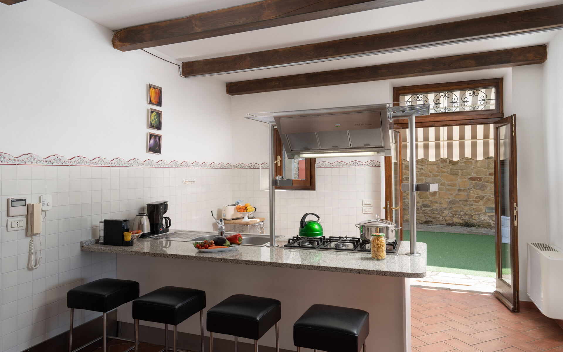 Dobro opremljena kuhinja, Pećnica, Zamrzivač, Frižider, WiFi internet, Perilica posuđa, Perilica za rublje, Aparat za kavu (talijanski), Mikrovalna pećnica, Ploča za kuhanje, Izlaz u vrt