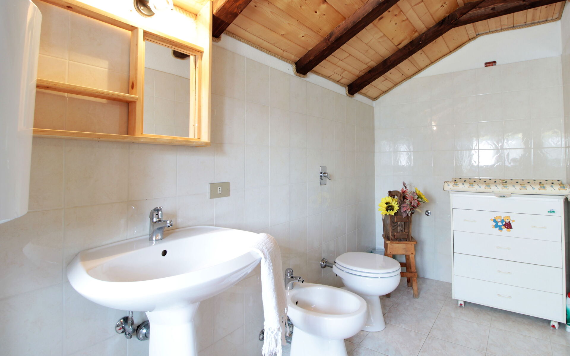 On the first floor are the 3 bedrooms (one with a double bed and a cot for children 0-3 years, one with a double bed and a single bed and one with two single beds) and the bathroom with shower and changing table.