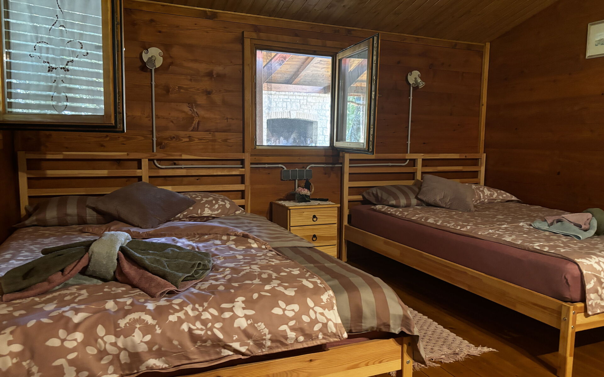 Casa Robinson in Vižinada consists of two separate buildings. The first building contains two double beds and the entire interior is panelled in wood, providing a warm, rustic atmosphere. The second building is equipped with kitchen utensils and furniture, including a comfortable sofa for relaxing.
