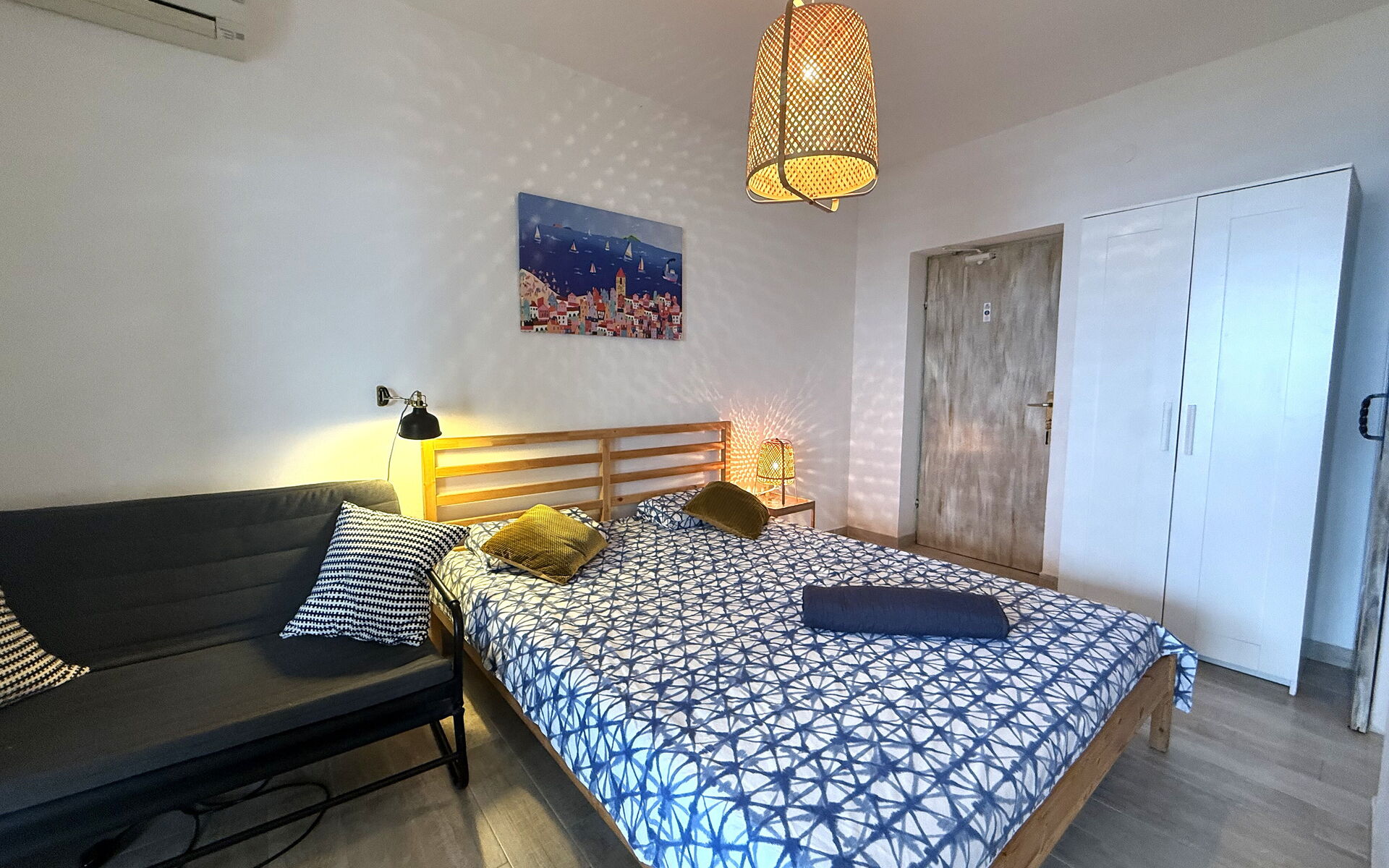 Klimatizacija, Dobro opremljena kuhinja, Sofa, Zamrzivač, Frižider, WiFi internet, Bračni krevet, Blagovaonski stol, televizija, Izlaz na balkon