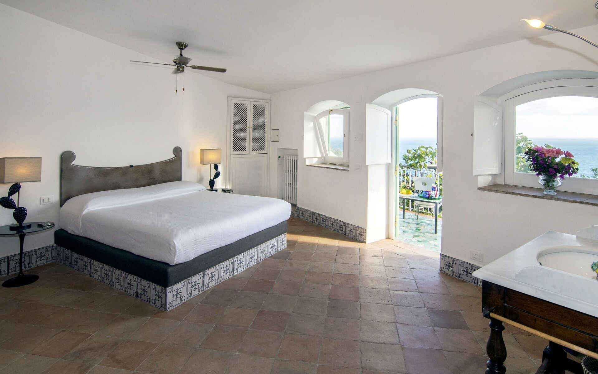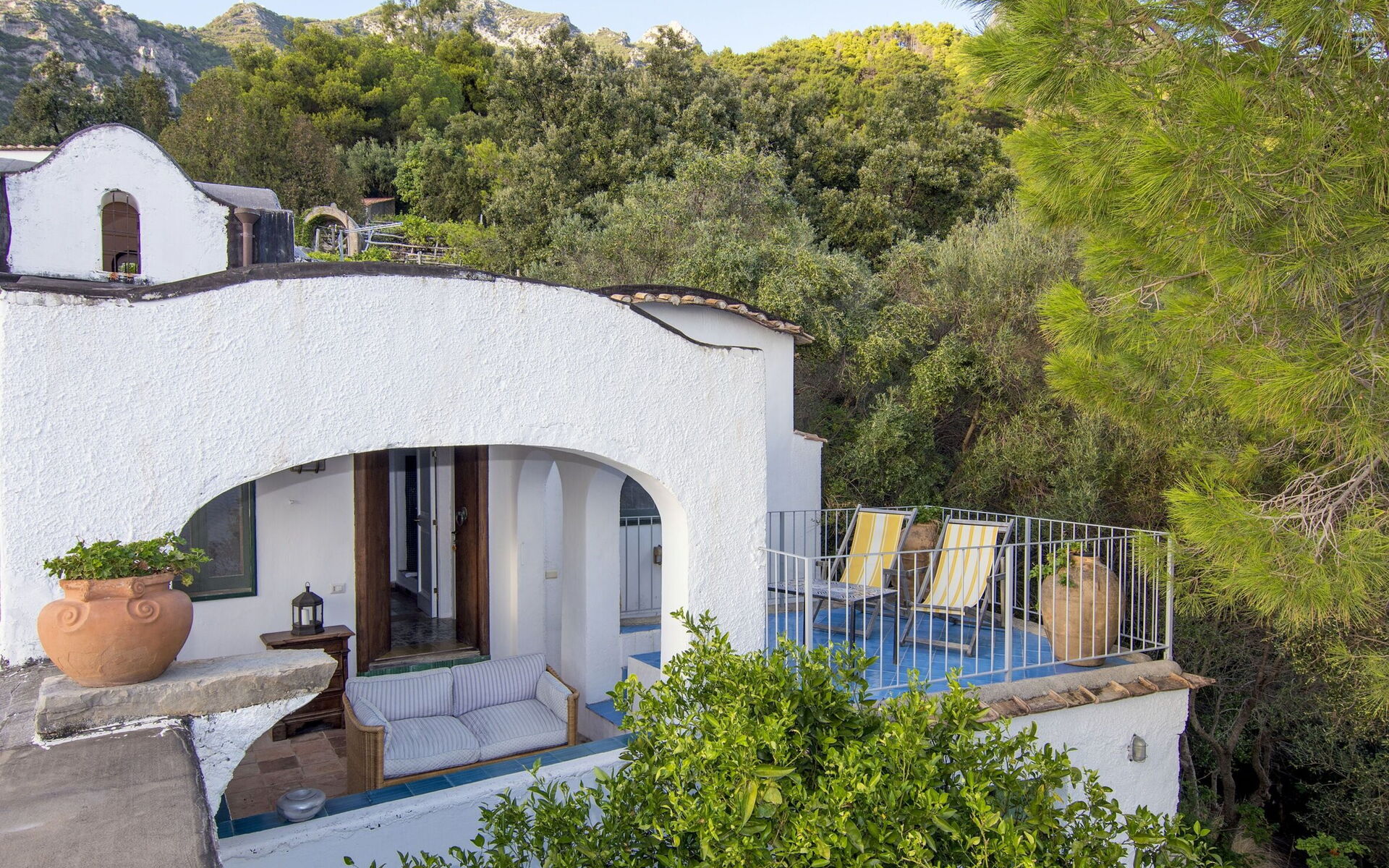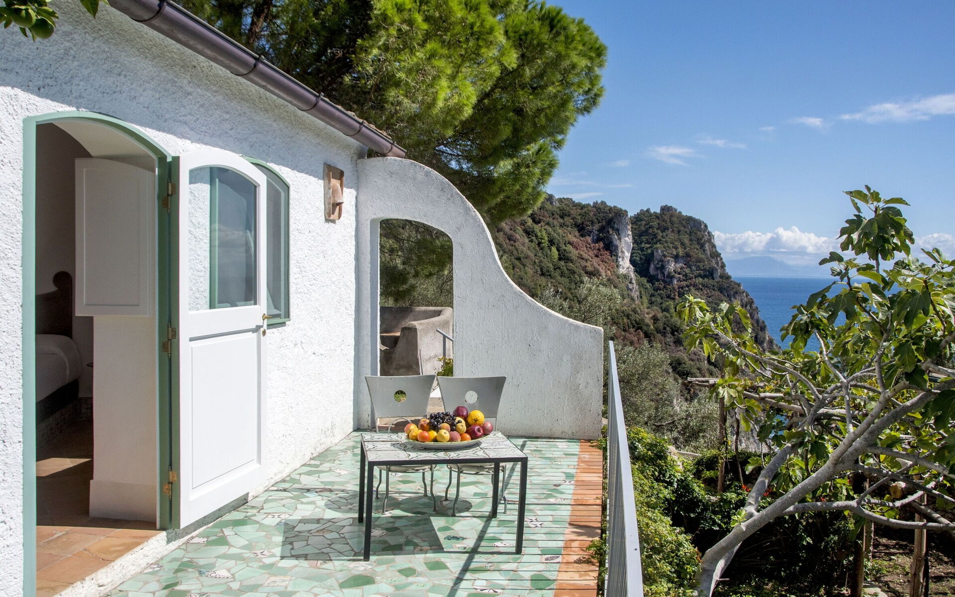 Tra pergolati di limoni e una fitta vegetazione mediterranea, la dimora è piena di fascino e con un panorama mozzafiato che vi farà tuffare tra l’azzurro cielo e il blu delle acque.