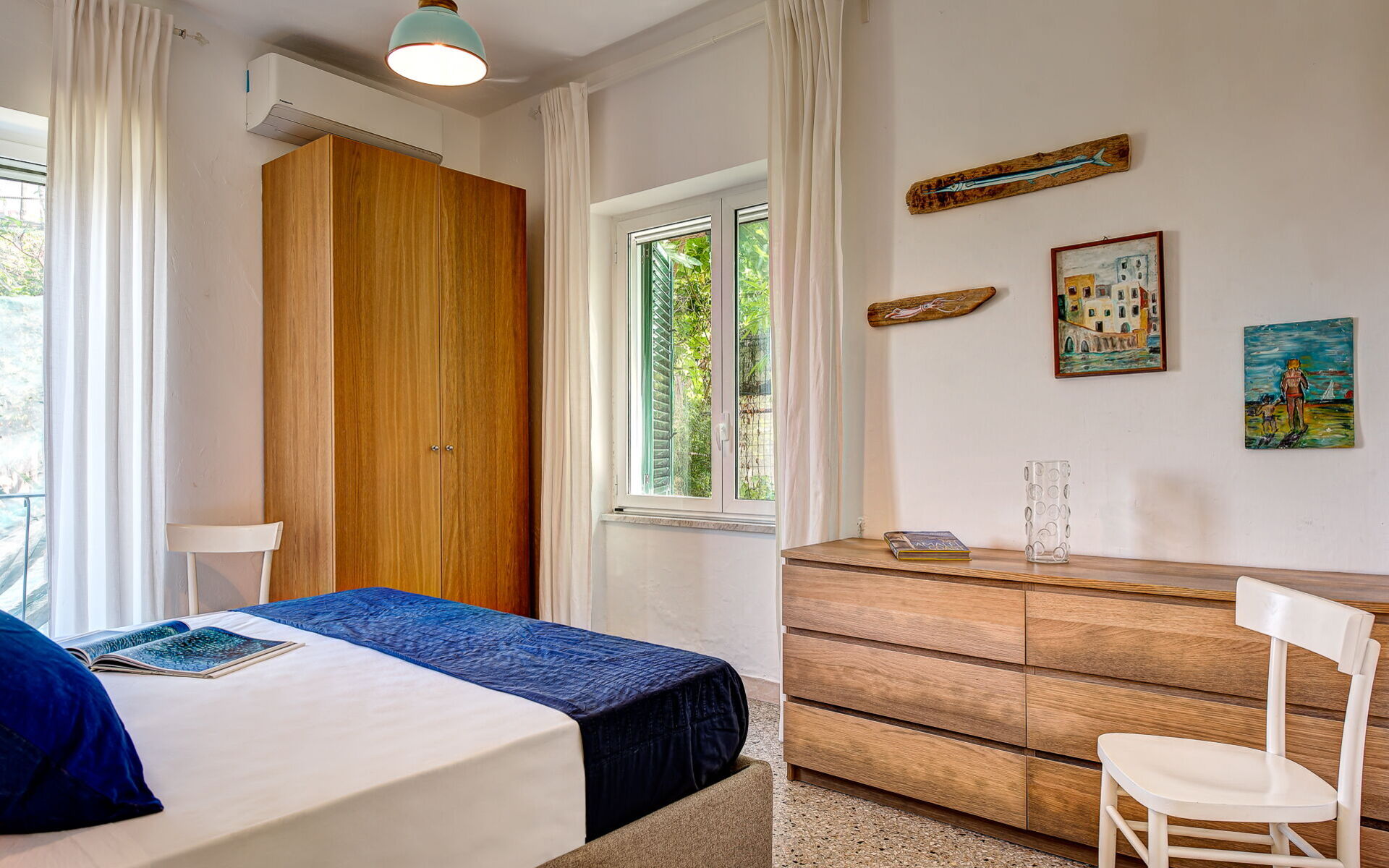 Il punto forte di questo appartamento è la terrazza privata della camera principale, arredata con lettini e mobili da esterno, da cui potrai ammirare una vista infinita sul mare. L’appartamento è dotato di aria condizionata e Wi-Fi per il massimo comfort.