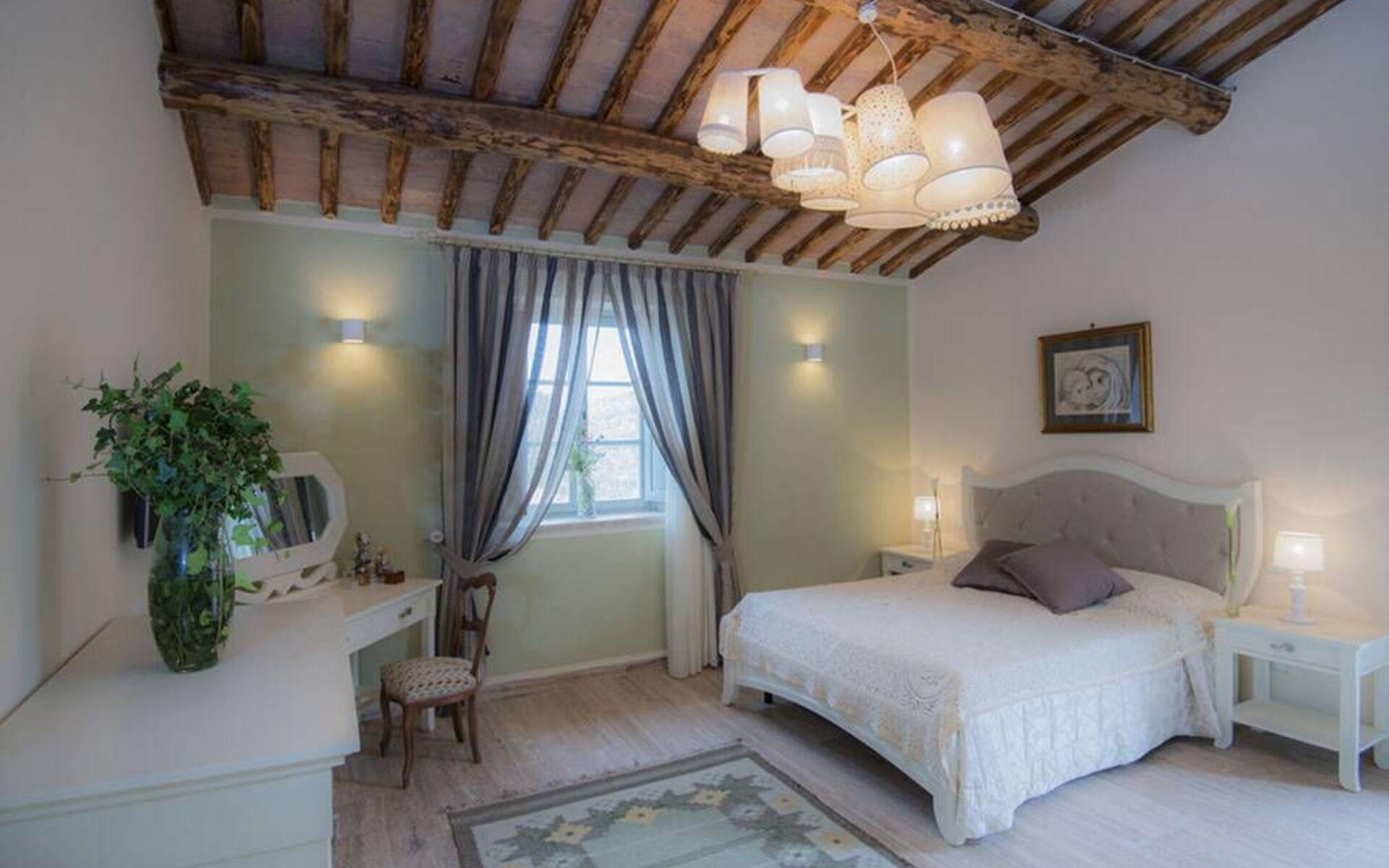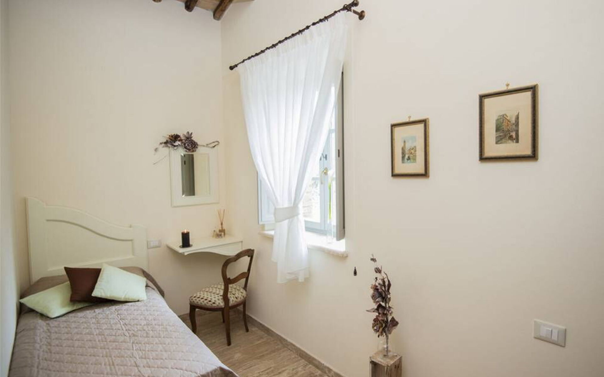 Inoltre tre camere matrimoniali di cui una con bagno con doccia e una camera singola con bagno esterno. Ogni camera matrimoniale ha la televisione.