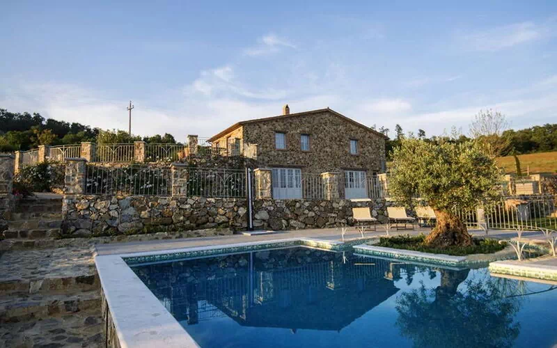 Caratteristico il laghetto per la pesca e la grande terrazza davanti alla villa.