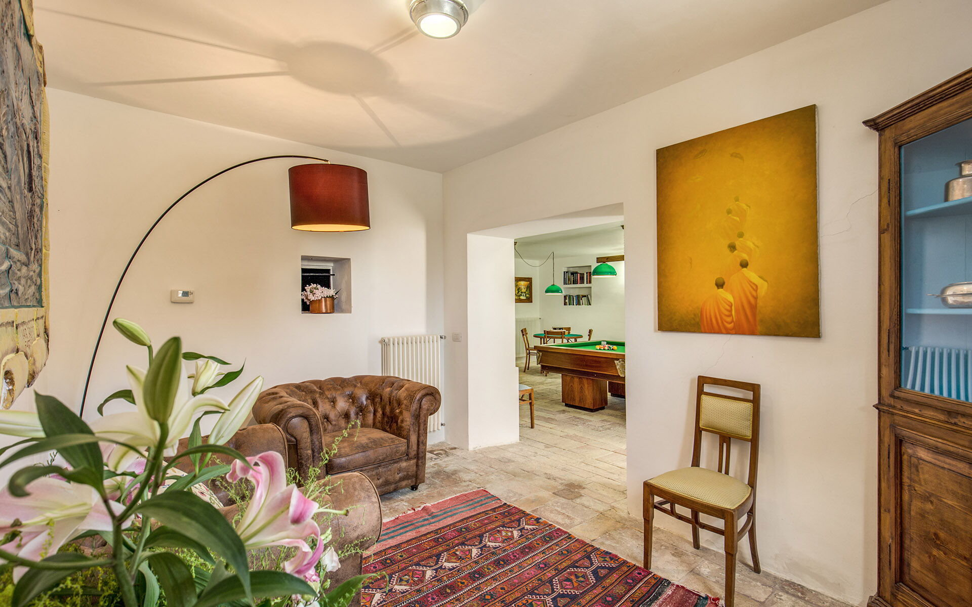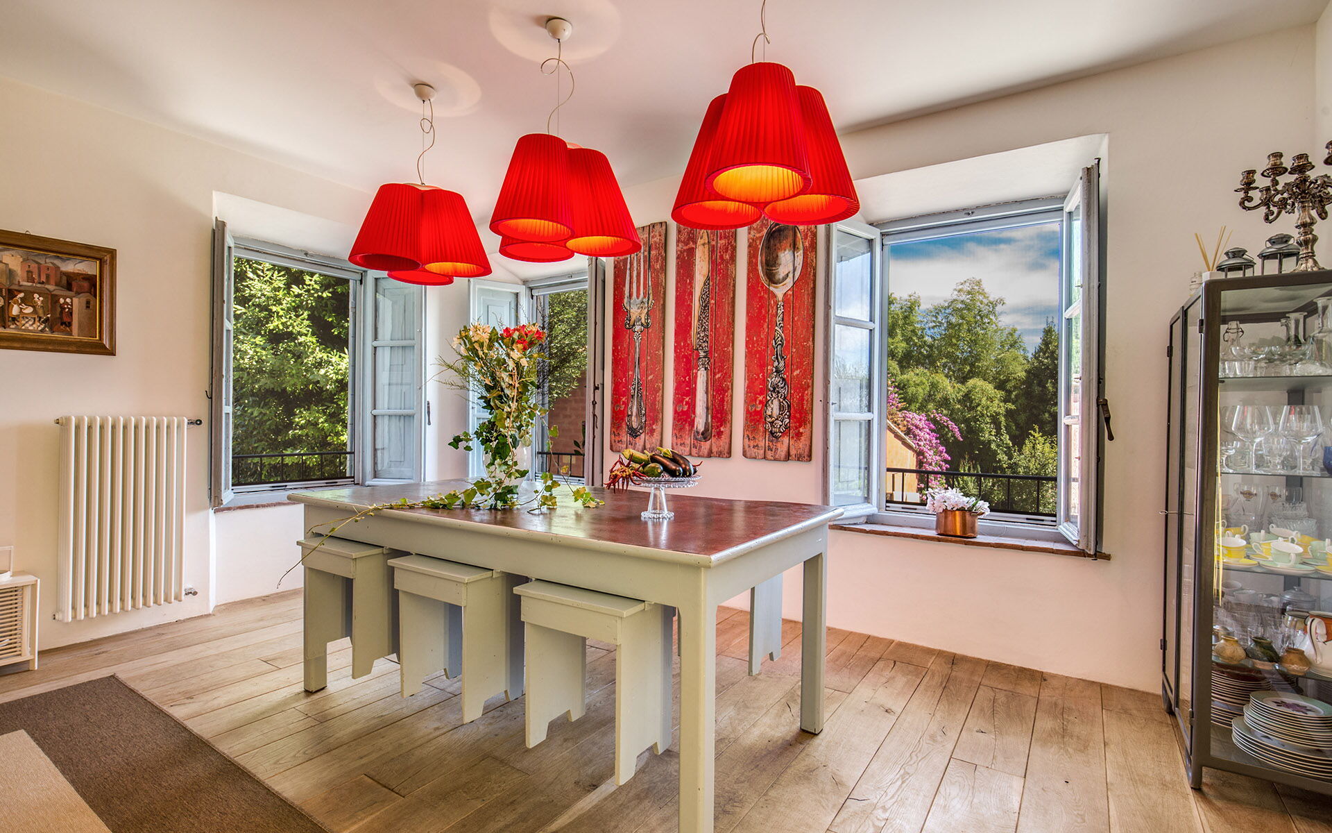 In caso di pioggia potrete sempre distrarvi nella sala biliardino e biliardo o utilizzare l’area barbecue. Spaziosa la piscina rettangolare riscaldata di circa 80 metri quadrati al centro del parco di tre ettari, capace di regalare un vero e proprio tuffo nel verde. Nel giardino è presente anche un forno a legna mentre all’interno presenta una comoda e dotatissima cucina insieme a un salone doppio con caminetto con sei moderni bagni con doccia o vasca per il massimo del relax.
