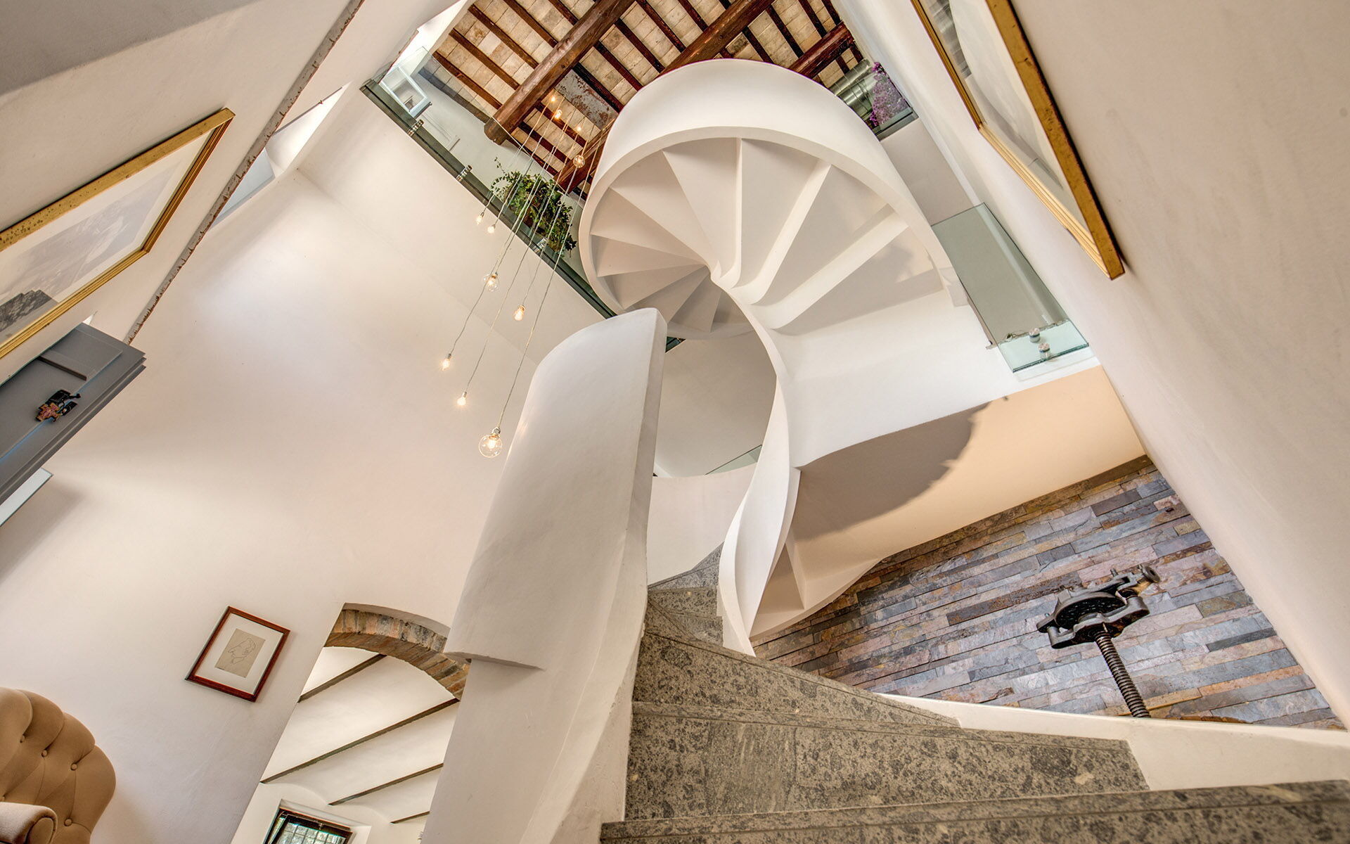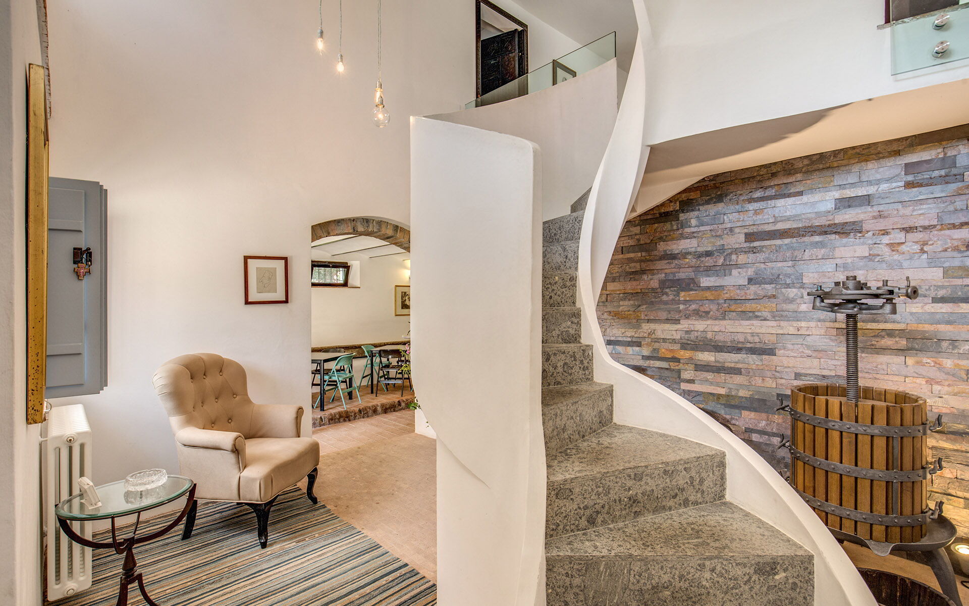 Le stanze hanno letti restaurati di varie epoche appartenenti alla Villa come gran parte dei mobili. Accedendo dall’ingresso del piano terra ci si trova davanti ad un scala in cemento elicoidale che collega i due piani con parapetti e ballatoio in cristallo, la copertura a doppia falda con pianelle in cotto fatte a mano e travi di castagno è a vista. Un tempo fu dimora estiva. Qui, dal centro di Osimo, la nobile famiglia proprietaria si trasferiva per godere del fresco della campagna e trascorrere ore piacevoli in compagnia di parenti ed amici.